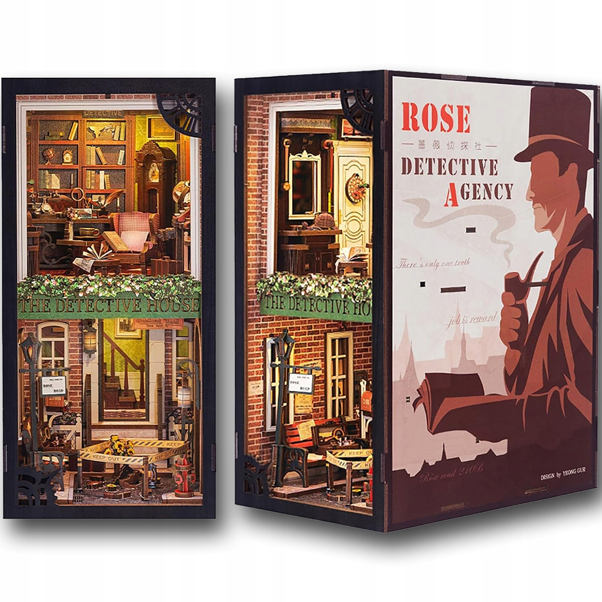 👑CUTEBEE Book Nook Set із пилозахисним чохлом - набір для лялькового будиночка своїми руками зі світлодіодним підсвічуванням, набори моделей книжкових куточків для дорослих (детективне агентство Rose SZ02B)👑