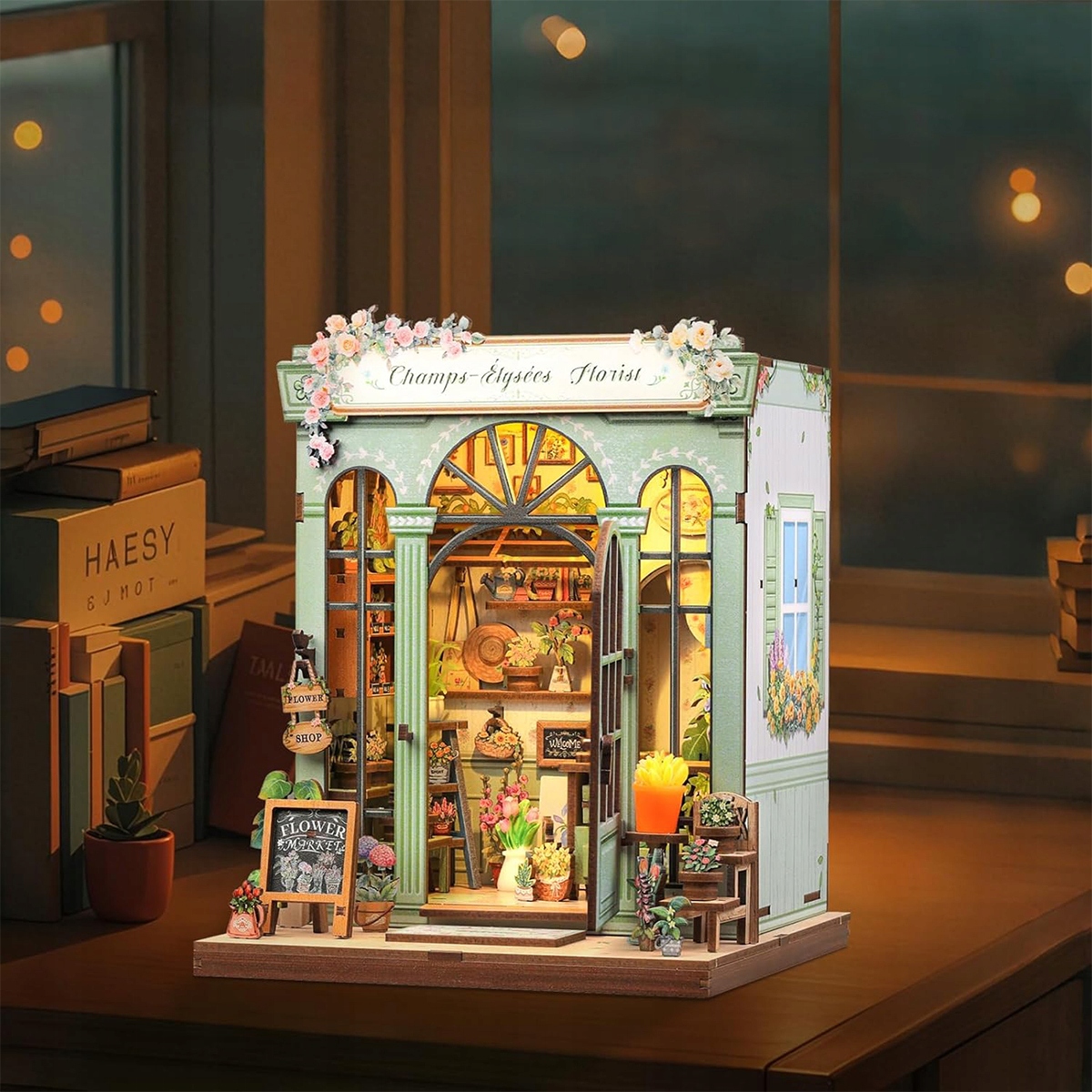 CUTEBEE Book Corner Kit - лялькові будиночки своїми руками, мініатюрний будиночок для дорослих своїми руками, дерев'яний 3D-пазл і форзац | Креативний набір для декорування книжкової полиці | Подарункові, 199 шт. (Квітковий магазин Єлисейських полів)