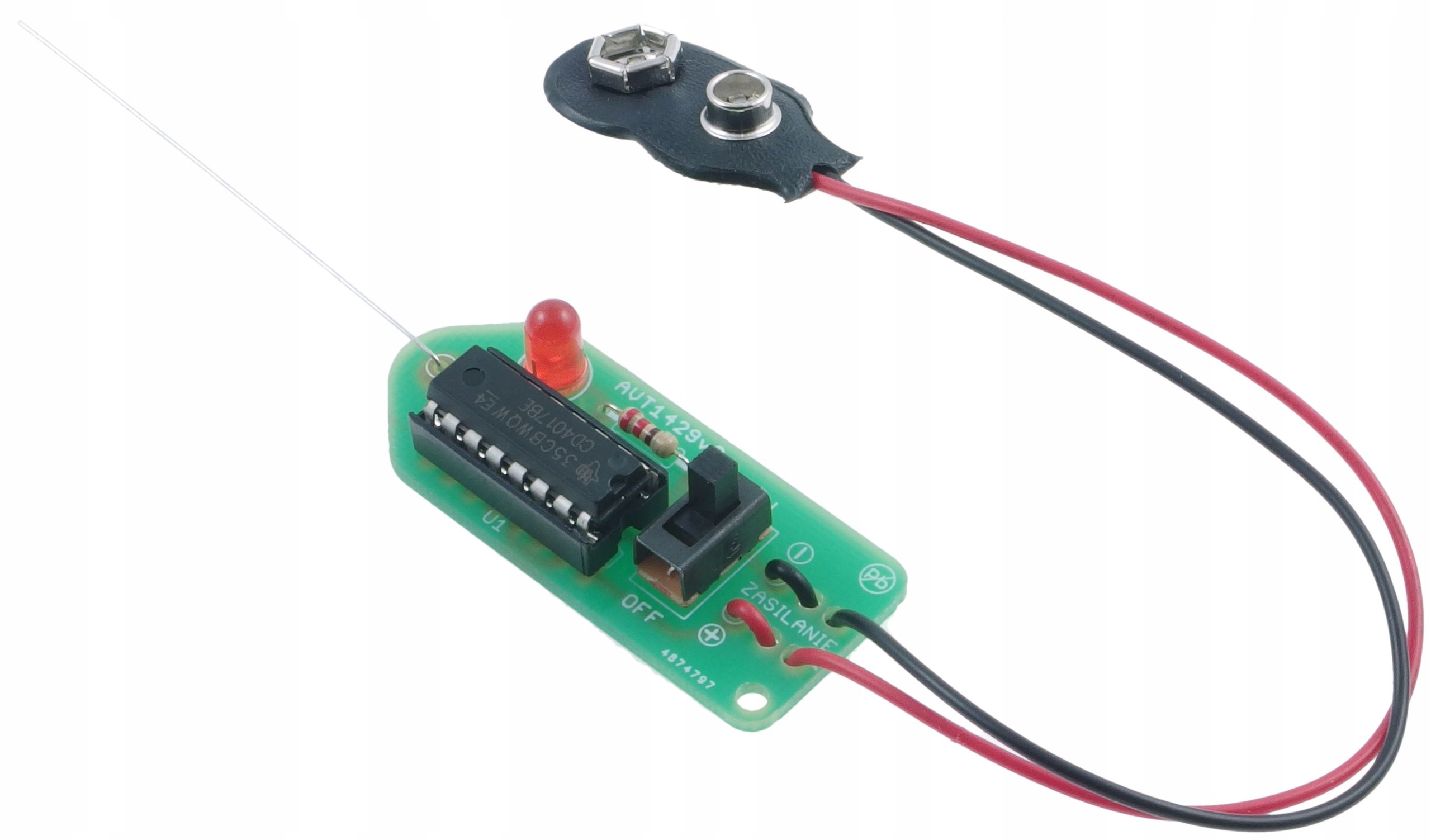 Про наявність електромагнітного поля детектор сигналізує загорянням світлодіода. Його миготіння стає інтенсивнішим, чим ближче датчик до дроту. детектор.