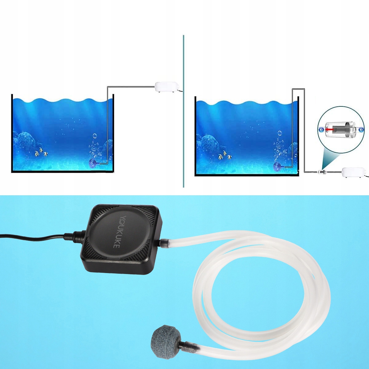 Цей акваріумний кисневий насос YOUKUKE спеціально розроблений для покращення здоров’я риб шляхом розчинення кисню та має унікальний зворотний клапан потоку води, який можна регулювати, щоб акваріум або акваріумний кисневий насос підтримували стабільний тиск повітря та потік повітря.