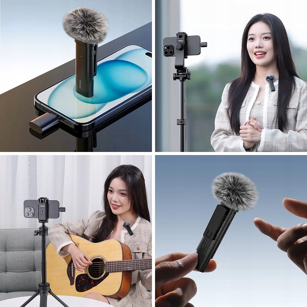 Ulanzi WM-10 – це легкий бездротовий мікрофон для iPhone з роз'ємом Lightning.< /b > Набір складається з передавача з вбудованим мікрофоном з всеспрямованими характеристиками та мініатюрного приймача, підключеного безпосередньо до телефону. Він сумісний з вибраними моделями iPhone і планшетами iPad, оснащеними портом Lightning. Увага! Деякі моделі пристроїв Apple мають порт USB-C.