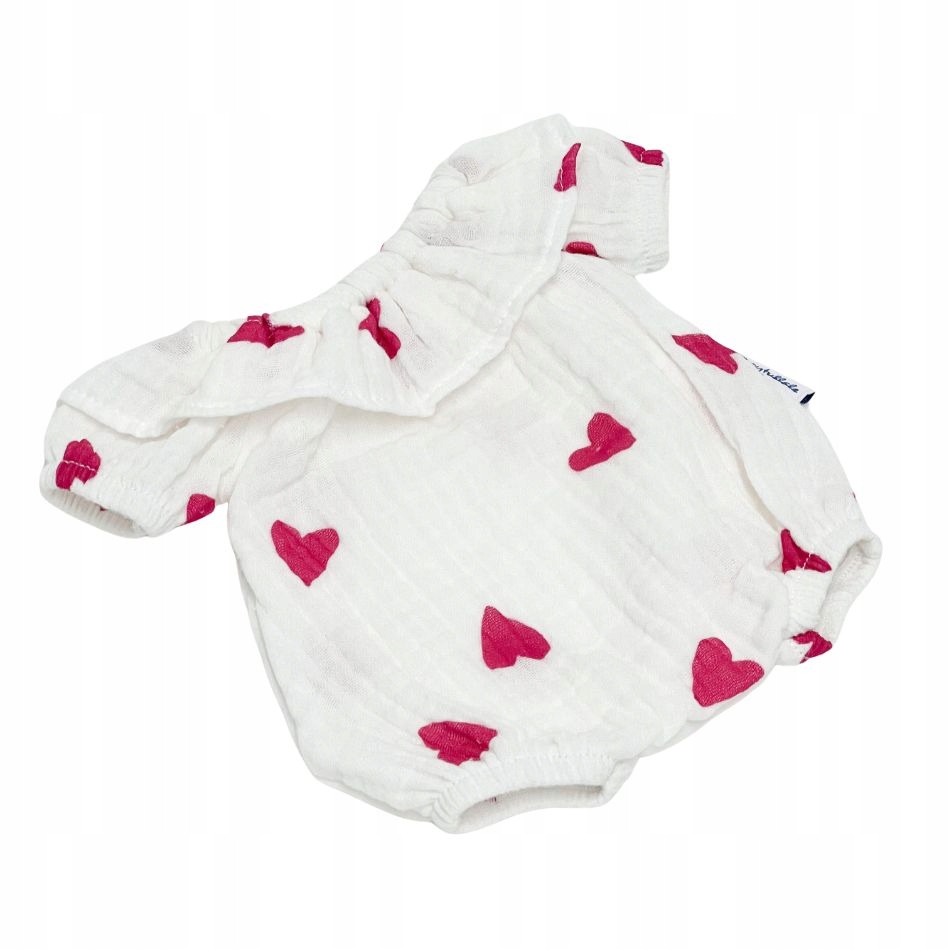 Miniland 38 cm ubranka dla lalek kombinezon z falbanką różowe serduszka