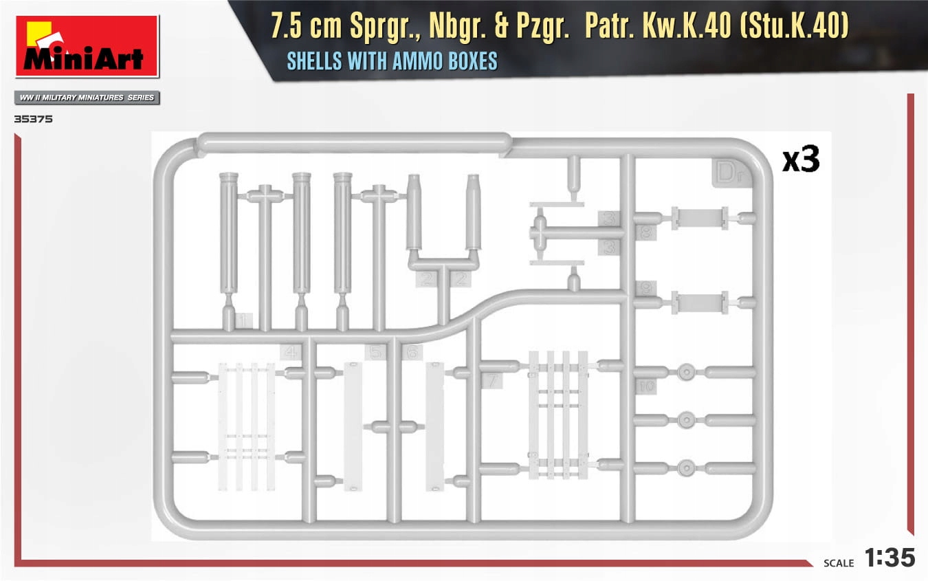 МІНІМИСТЕЦТВО 35375 1:35 7,5 см Розмір, № & Pzgr. Побачити Kw.K.40 (Stu.K.40) СНАРЯДИ З ЯЩИКАМИ ДЛЯ БОЄПРОПАДУ