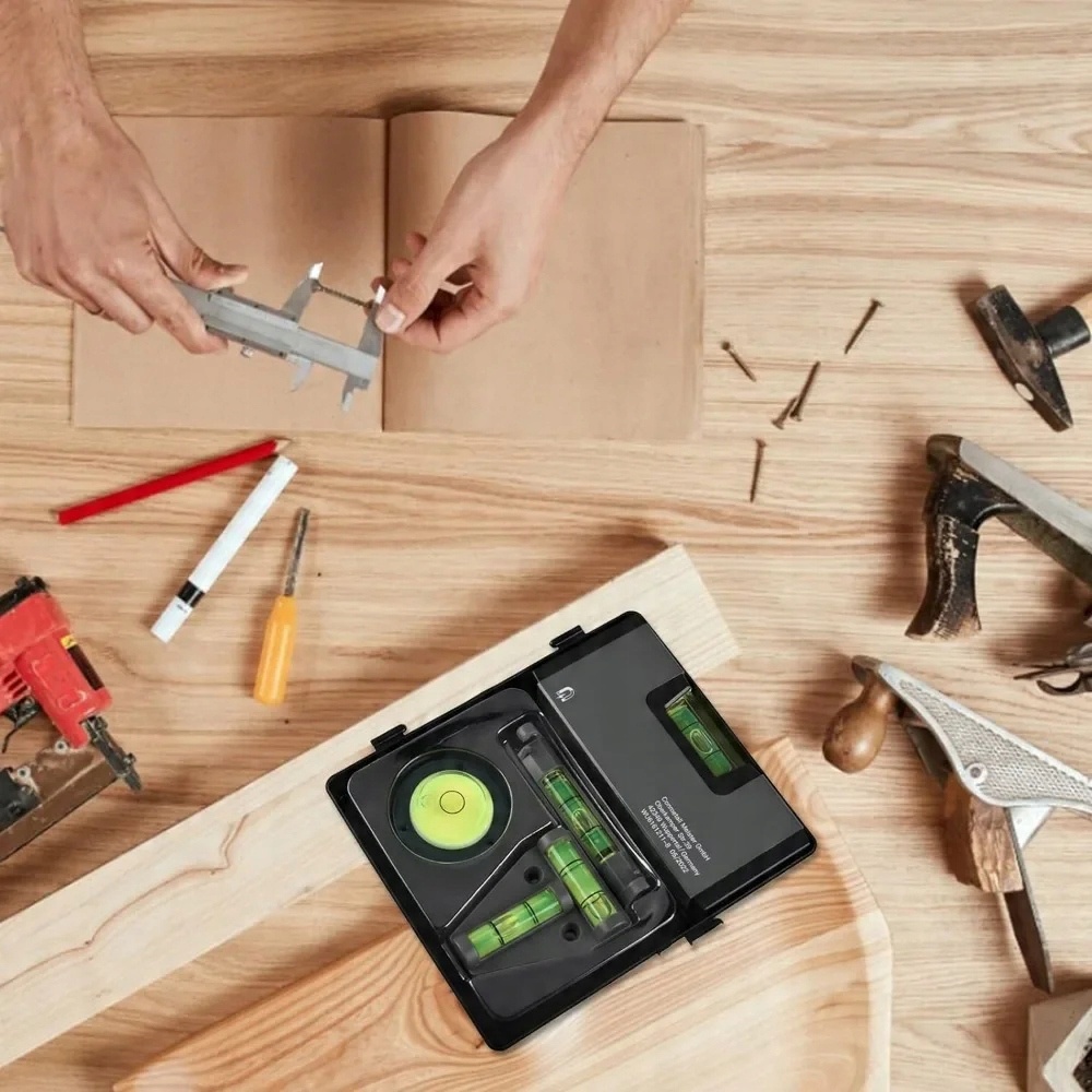 - 【Висока точність】Набір інструментів для вимірювання рівня бульбашок високої точності, розташований горизонтально на поверхні об’єкта, забезпечення точних результатів вимірювань. Бульбашку рівня чітко видно.