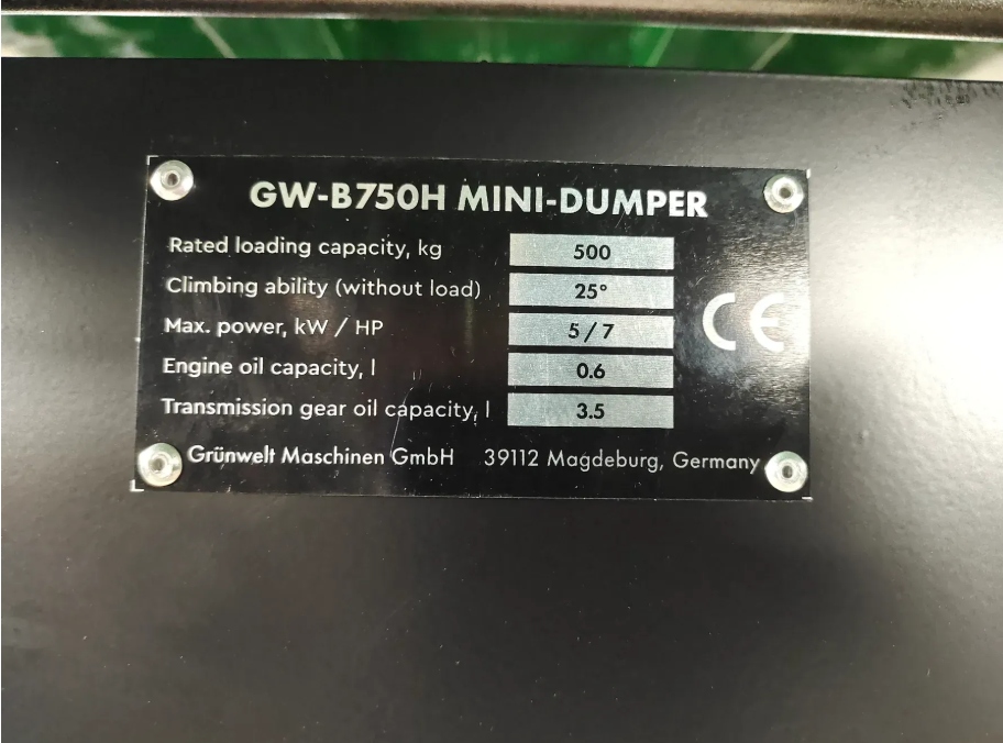 Міні-самоскид Grünwelt GWB750H з гідравлікою, Будівельний самоскид 750 кг, Самоскид