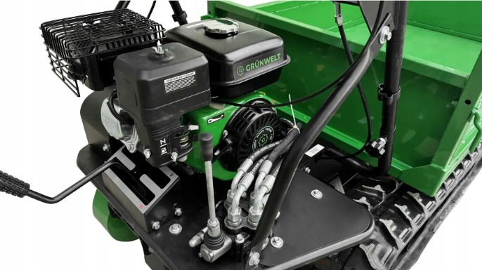 Конвеєр Grünwelt GWB750H відрізняється маневреністю та високою ефективністю, а тип самоскидного кузова значно спрощує процес розвантаження. Цей гусеничний візок стане чудовим помічником у саду, городі, теплиці, на фермі чи будівництві.