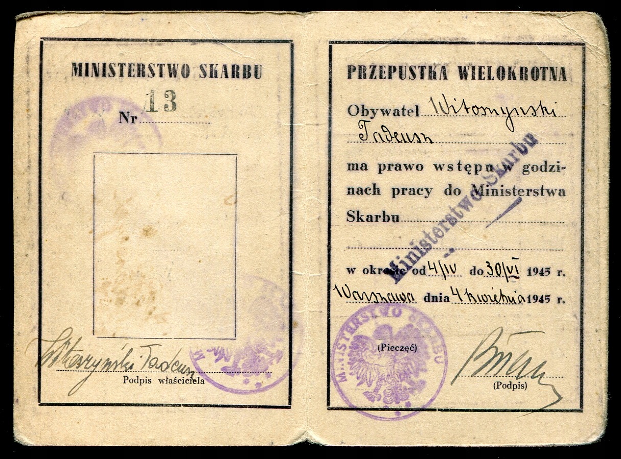 МІНІСТЕРСТВО КАЗНАЧЕЙСТВА / Перевал Варшава 1945р