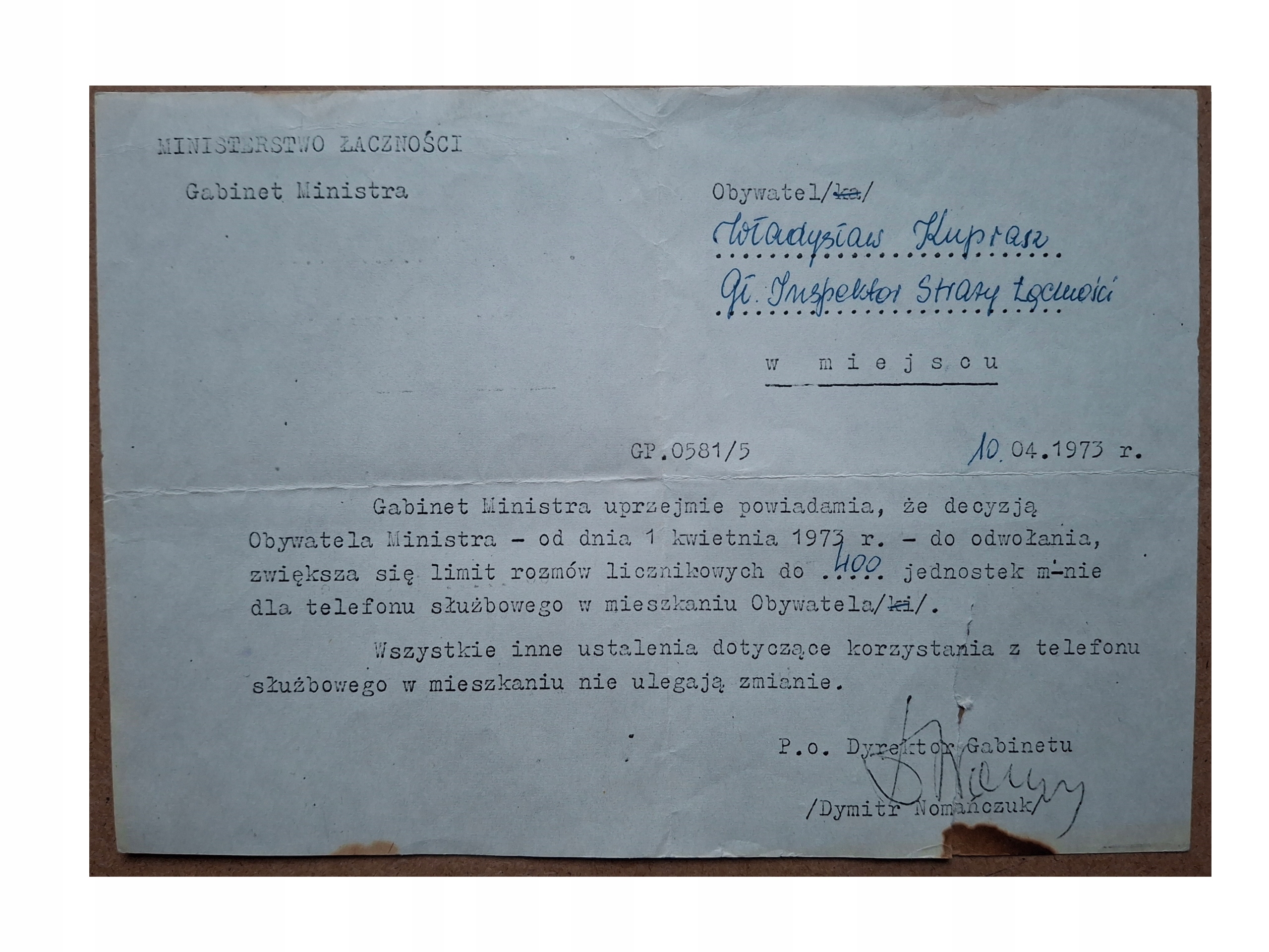 МІНІСТЕРСТВО ЗВ'ЯЗКУ - ОФІС МІНІСТРА ПРЛ
