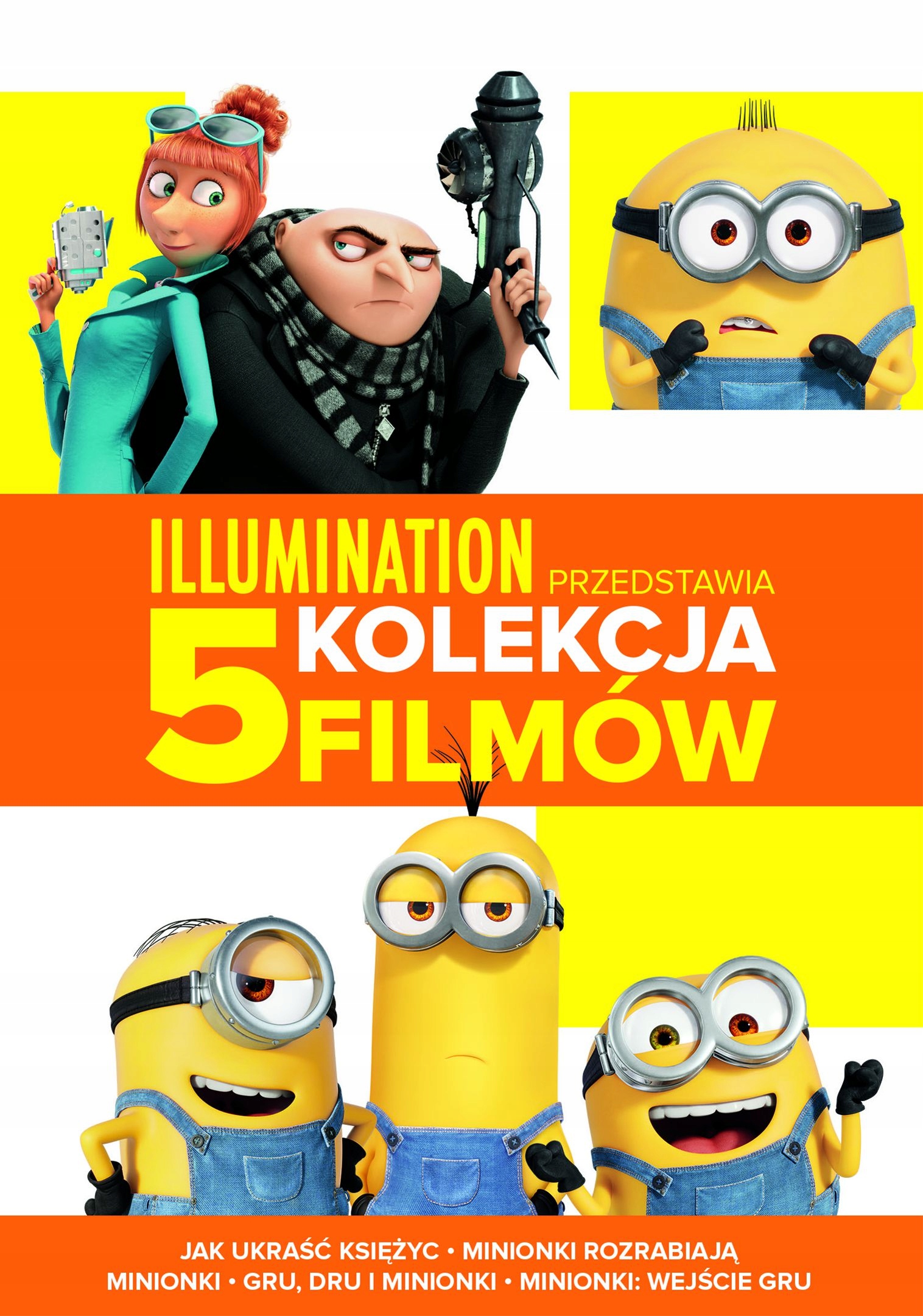 Повна колекція з п’яти фільмів про улюблених жовтих героїв – Міньйонів! У пакет входять фільми: Гадкий я; Нікчемний я; Гру, Дру та Міньйони; Міньйони та остання частина Minio... Minions. Пакет 1-5 DVD видання, відмінний акторський склад. Реліз містить додатковий контент: Home Makeover; Світ міньйонів; банан; Міні-фільми: постмодерні міньйони, міньйони та монстри та багато іншого.