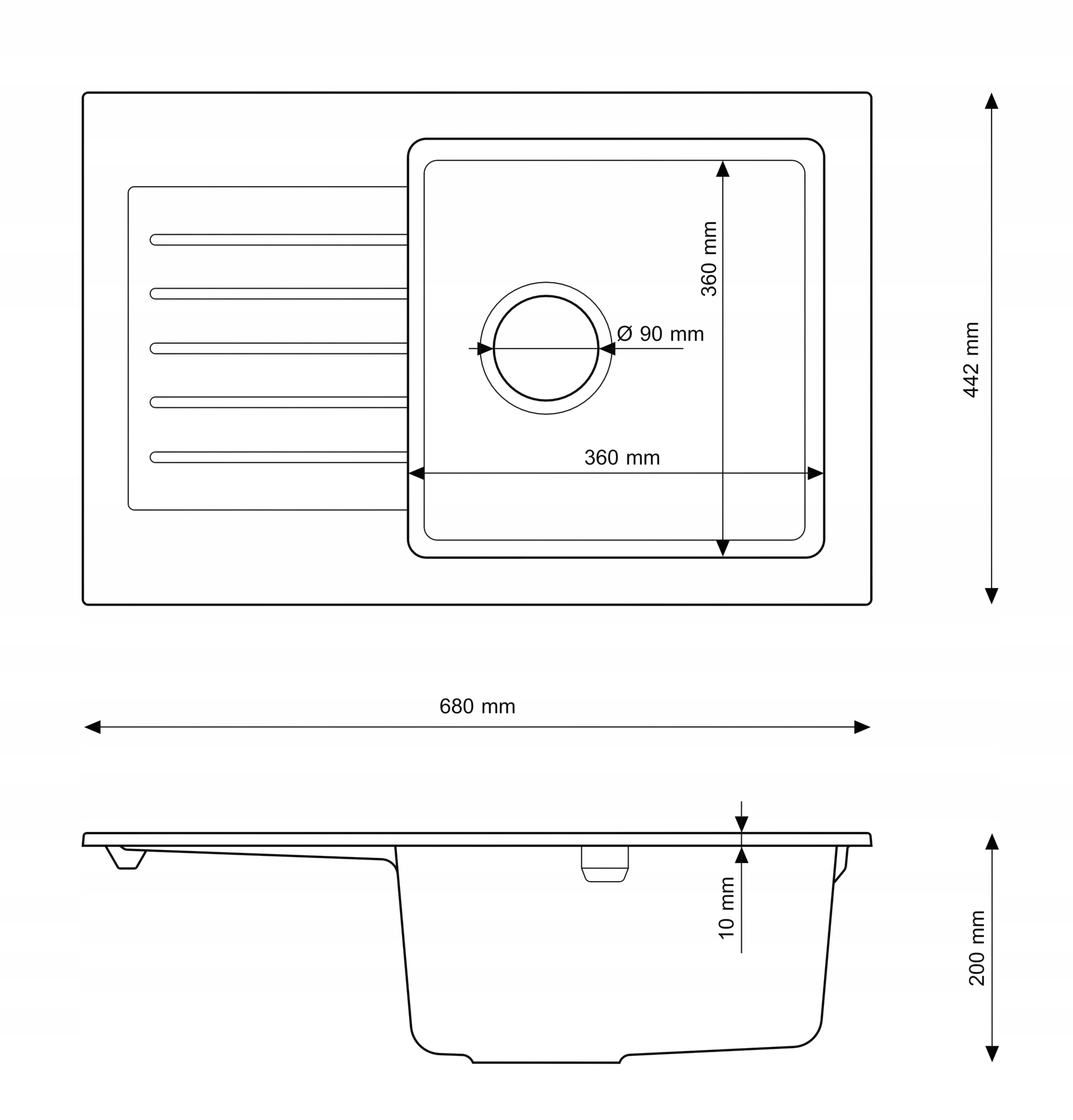 Діаметр злив: 90 мм