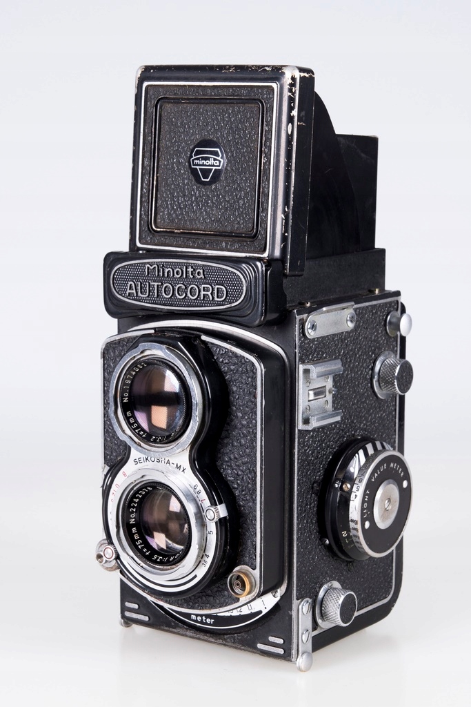 З початку створення Мінолти, тобто з 1928 року, мрія свого засновника Kazuo Tashima, полягала в тому, щоб створити не тільки копії німецьких камер, але й власні продукти, але щонайбільше, лише трохи засновані на цих німецьких. У ті часи всі бренди скопіювали європейські конструкції. Лише в 1938 році перша камера з’явилася під назвою Minolta - це був minoltaflex, який був схожий на німецький роллейкорд - він мав подібний вигляд, затвора, об'єктив. Незабаром камера була вдосконалена створення моделі Minolta Automat, яка мала прокрутку з кривошипом, підключеним до лічильника кадру та стукаючим затвором, як у камерах Rolleiflex. На основі моделі машини всі інші моделі згодом були створені і все більше відрізнялися від німецьких, оскільки деякі рішення повинні бути перевищені там. У 1953 р. Була створена камера Мінолтакорд, яка характеризувалася дуже швидким та зручним заточенням за допомогою ваджі в нижній частині камери, це було швидшим рішенням, ніж ручка в німецьких конструкціях. Одна важлива річ також була змінена в камері - тепер плівка була не знизу вгору, а зверху внизу камери - у неї були маленькі тлтерс. Це вдосконалення служило меншим вигином плівки всередині камери, особливо якщо вона тривалий час лежить з плівкою. Ця камера також мала кращий затвор Сейкоші або Оптіпер. У 1955 році камеру знову вдосконалювали, називаючи її Minolta Autocord - різниця між попередником була головним чином за відсутності вікна для перегляду номера клітки на задній частині камери, оскільки лічильник клітки вже був настільки розвинений, що не потрібно було встановлювати додатковий показник.