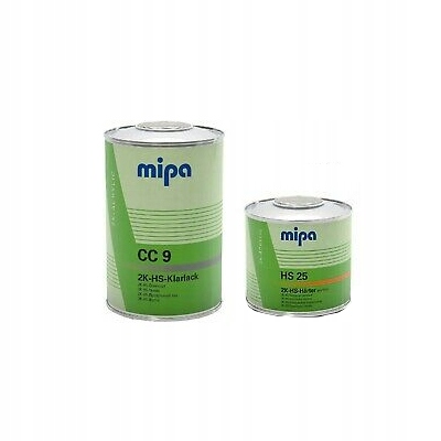 MIPA CLEAR COAT CC9 5L+ HARDENER HS 7.5L KPL — це новий продукт, який, порівняно з іншими популярними прозорими лаками, забезпечує набагато швидше висихання при кімнатній температурі та затвердіння поверхні після короткого часу висихання в камері для розпилення при 60° C. Забезпечує чудовий блиск і якість покриття. Комфортність роботи маляра в основному забезпечується більшим терміном зберігання готової суміші. Доступні затверджувачі: HS10-швидкий, HS25-нормальний
