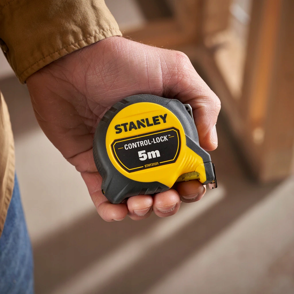 - Легка та компактна лінійка STANLEY® CONTROL-LOCK™ 5M (шириною 25 мм) була ергономічно розроблена, щоб забезпечити зручне захоплення та комфортне використання, забезпечуючи професійну довговічність і великий діапазон. Рулетка оснащена вбудованим гальмом, що забезпечує користувачам максимальний контроль і захист під час подовження та втягування стрічки. Стрічка має ширину 25 мм і вражаючий радіус дії 3,5 метра. Перші вісім сантиметрів стрічки покриті міцним покриттям BladeArmor®, яке забезпечує оптимальну стійкість до стирання та поломки. Крім того, стрічка має двосторонній друк, що дозволяє швидко та легко вимірювати над головою. Стрічка STANLEY® CONTROL-LOCK™ 5M має знімний магніт і багатофункціональний гачок для кращого зчеплення та максимальної універсальності для використання на будь-яких поверхнях. Яскраво-жовта стрічка STANLEY забезпечує покращену видимість у більшості умов будівельного майданчика.