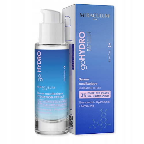 miraculum go Hydro - зволожуюча сироватка обличчя з 3% комплексом гіалуронової кислоти забезпечує дуже суху, зневоднену та еластичність шкіри, щоденну дозу гідратації, згладжування та рельєфу. Концентрована сироватка з 3% комплексом гіалуронової кислоти , збагачена ніацинамідом , гідманомелю і з’єднанням , забезпечує дуже суху, зневоднювану та еластичність шкіри, щоденна доза гідратації, гладкості та рельєфу. Підтримує природний мікробіом шкіри.