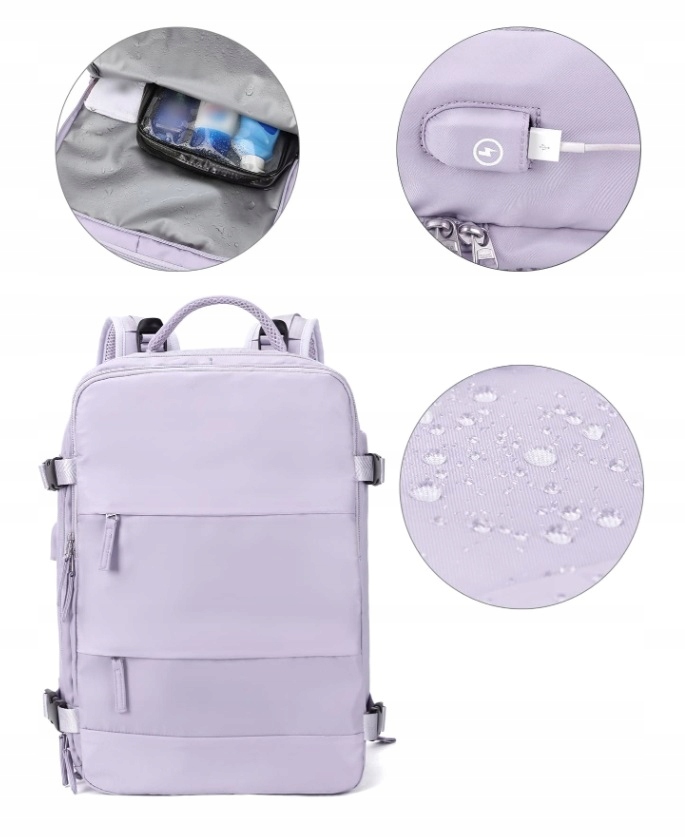 В ньому є місце для упаковки одягу з сітчастим відділенням на блискавці та водонепроникною кишенею для косметики. Крім того, основне відділення рюкзака захищено від неконтрольованого відкривання додатковими лямками з міцними застібками, розташованими з боків рюкзака. і USB-роз’єм, завдяки якому не потрібно діставати павербанк із рюкзака, щоб зарядити телефон чи інший портативний пристрій.