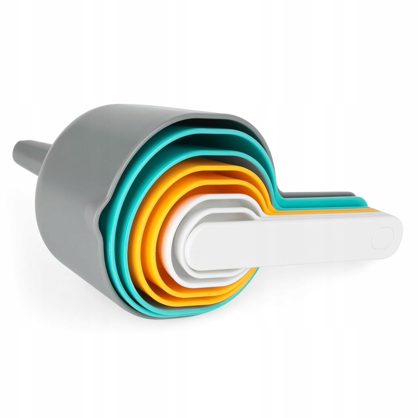 Набір із 7 кухонних мірних чашок Konighoffer з лійкою виготовлений із пластику. Його елементи мають різні кольори. Мірний глечик прозорий і дозволяє відміряти сипучі або рідкі інгредієнти в мл і від 0,5 до 4 склянок. Найменша мірна чашка в цьому наборі - 7,5 мл, найбільша - 1 літр. Виріб зручний, легко чиститься і дуже компактний. Стане в нагоді не тільки при випічці, але і при варінні або смаженні (наприклад, млинців).
