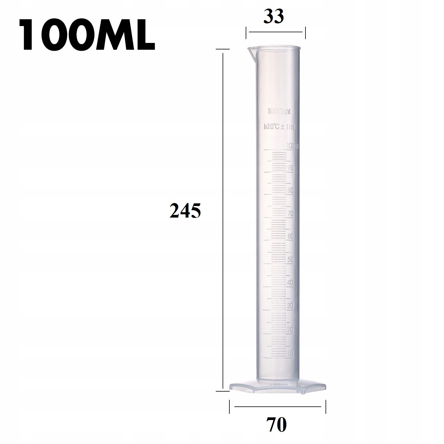 Пластикова шестикутна ніжка забезпечує стабільну підтримку. Він також має носик, який полегшує наливання та видачу рідини. Нанесена шкала є рельєфною, добре помітною та стійкою до стирання. Циліндр характеризується високою хімічною та термічною стійкістю.