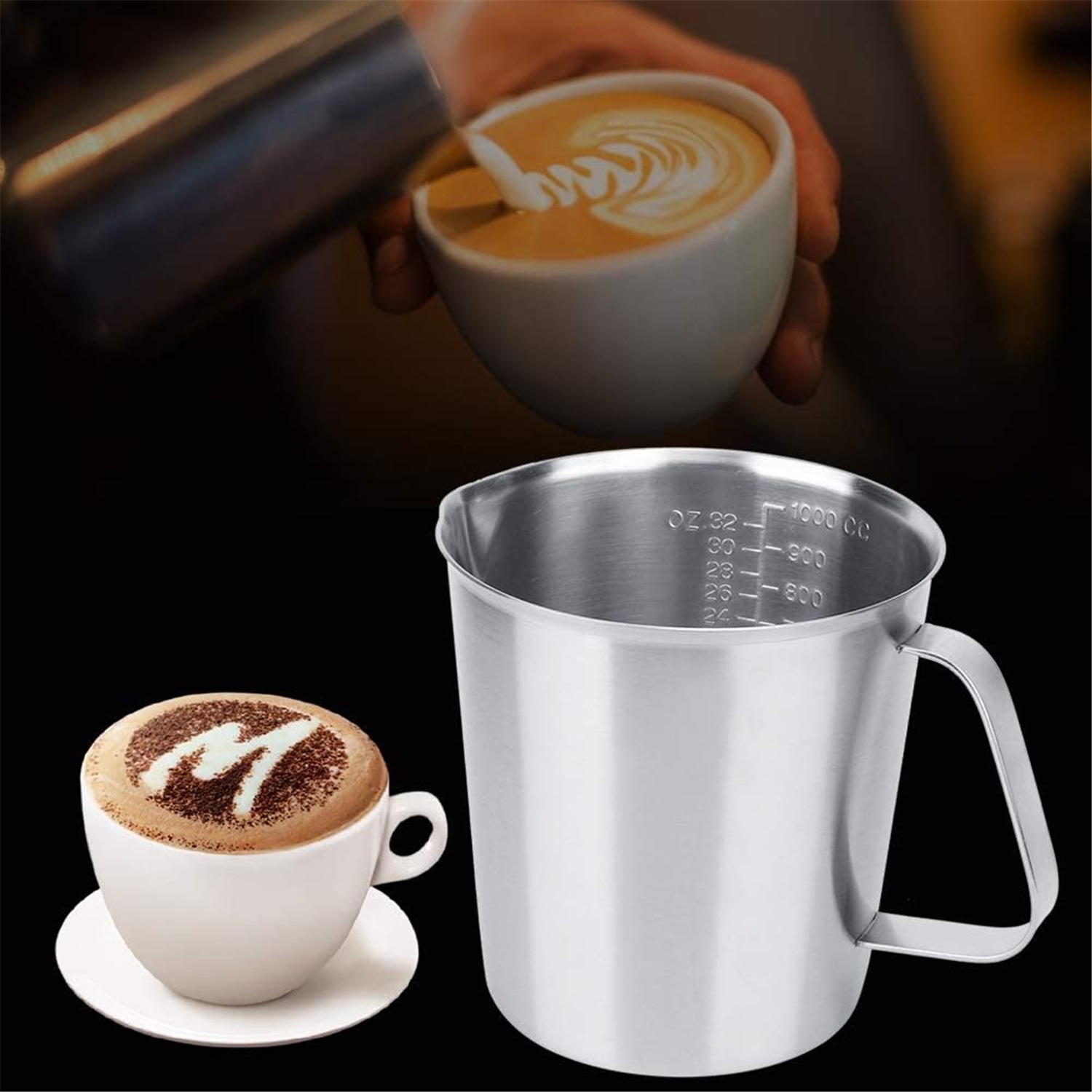 - Ця мірна чашка з нержавіючої сталі має зручну ручку, яка полегшує її наливання та використання. Спінювач підходить для зберігання молока, кави та інших рідин, задовольняючи ваші потреби в різних випадках.