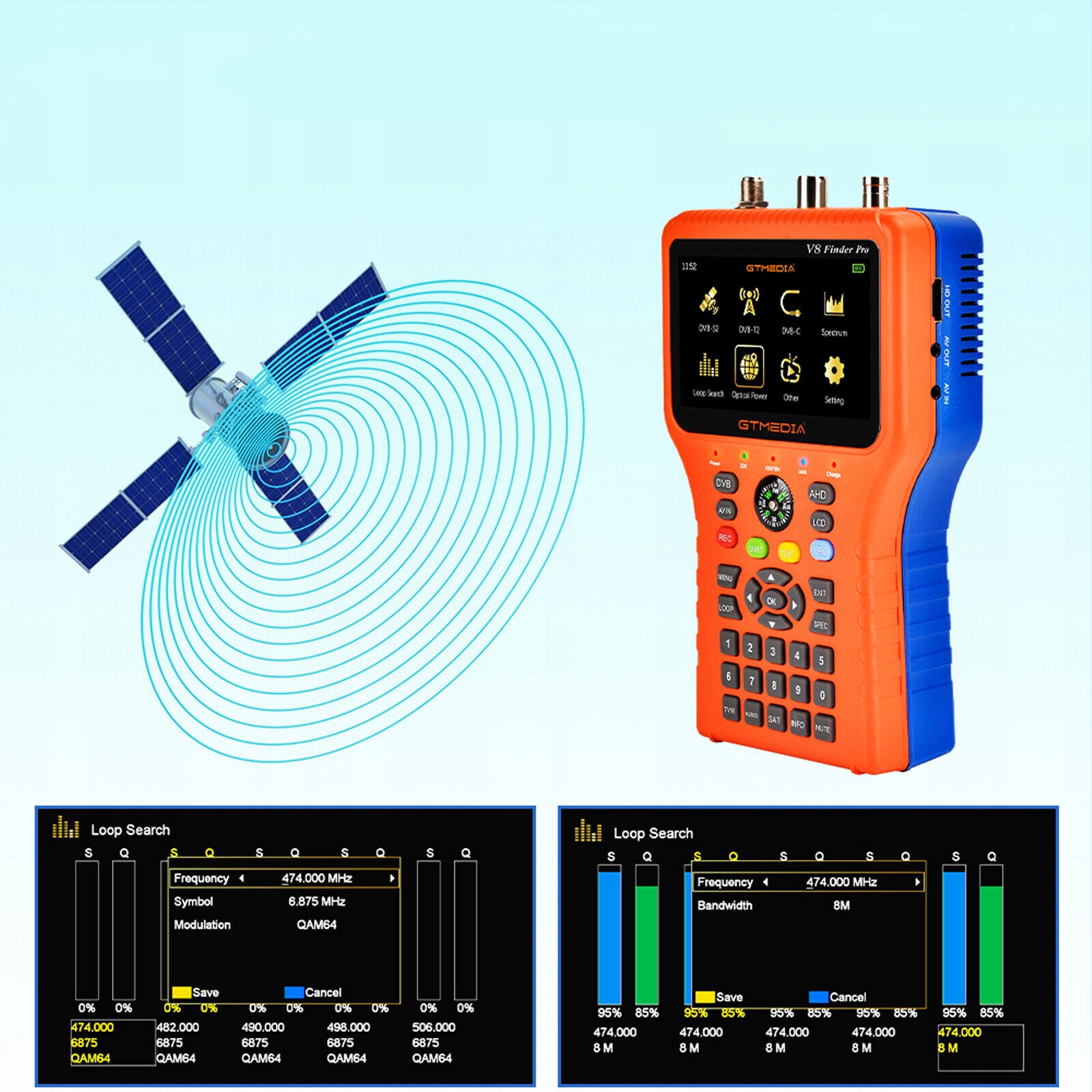 -Підтримка апаратного забезпечення H.264/H.265 (10 біт) декодування. Цифровий прилад для вимірювання потужності та якості сигналу. Підтримка попереднього налаштування всієї супутникової інформації. Підтримує циклічний пошук, автоматичне, сліпе, ручне або NIT сканування. Підтримка DISEQC 1.0/1.1/1.2, Unicable, тональний сигнал 0/22 кГц.