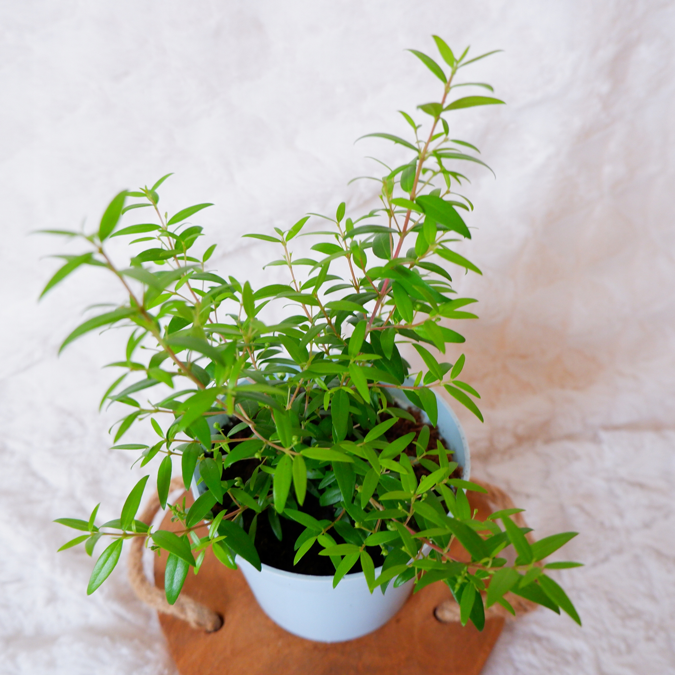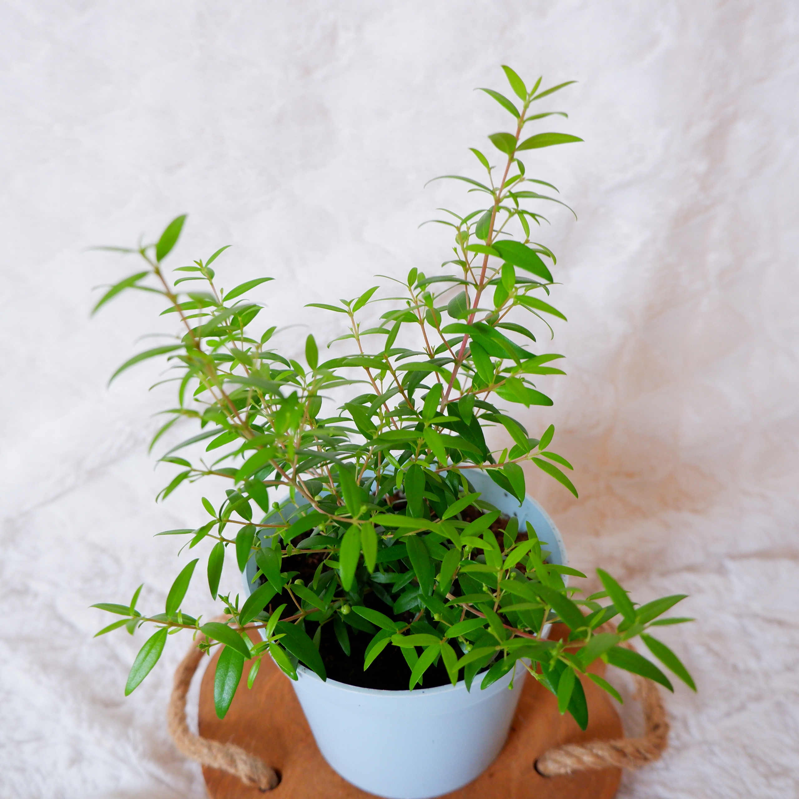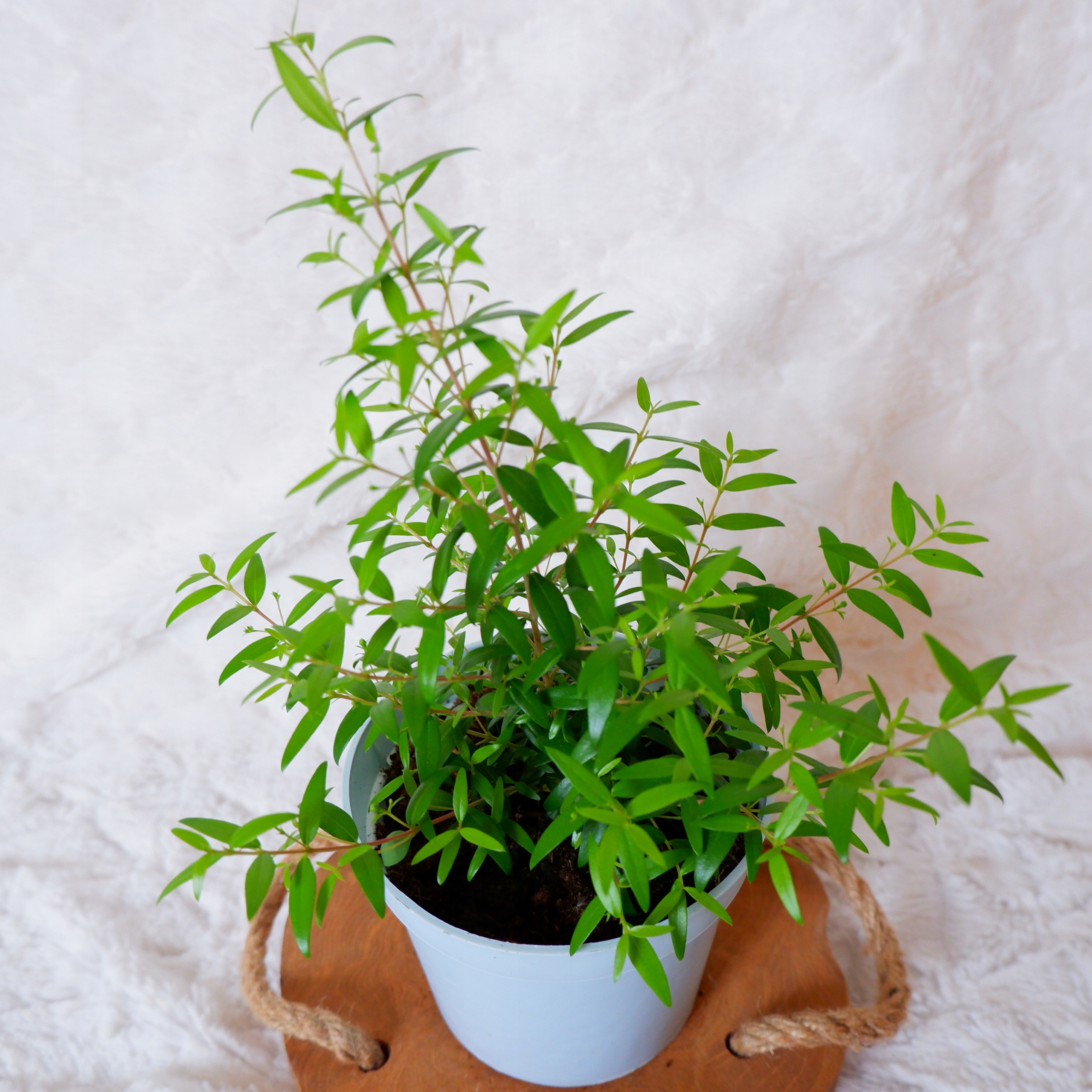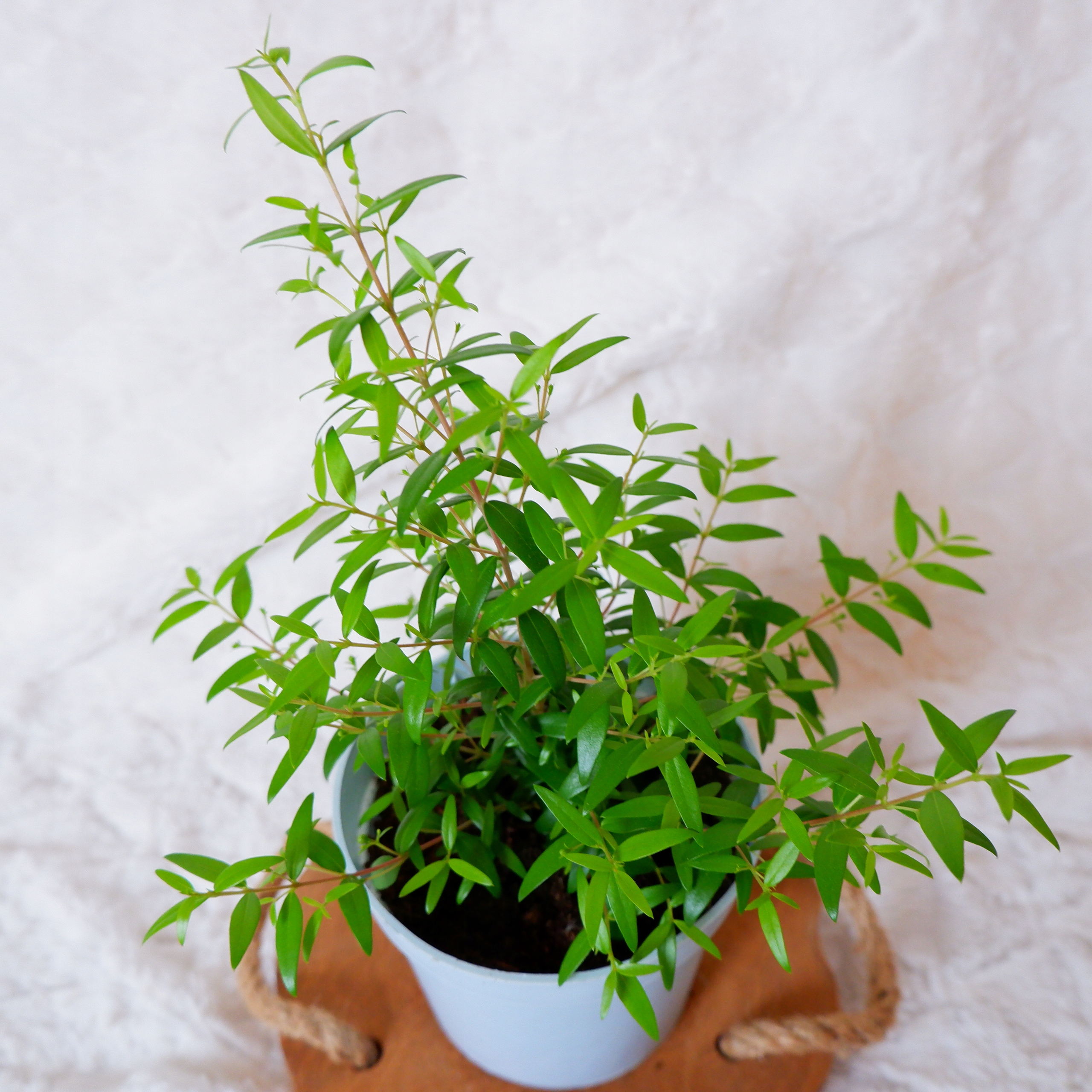 Мирт — вічнозелений чагарник із дрібним овальним листям. Цвіте з травня по липень - з пазух листя ростуть білі квіти. З часом вони перетворюються на їстівні білі або сині ягоди. У домашніх умовах досягає 30-100 см.