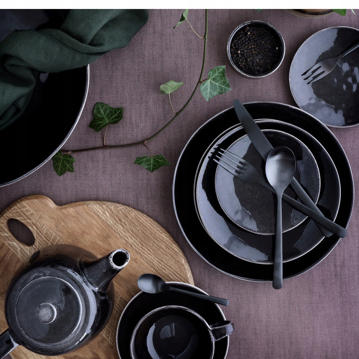 Красива, остання колекція кераміки північного вугілля бренда broste copenhagen . Продукти виготовляли з чорного каменю. Страви дають кімнаті елегантність. Прохолодний тон суден закінчений нерегулярним бронзовим краєм.