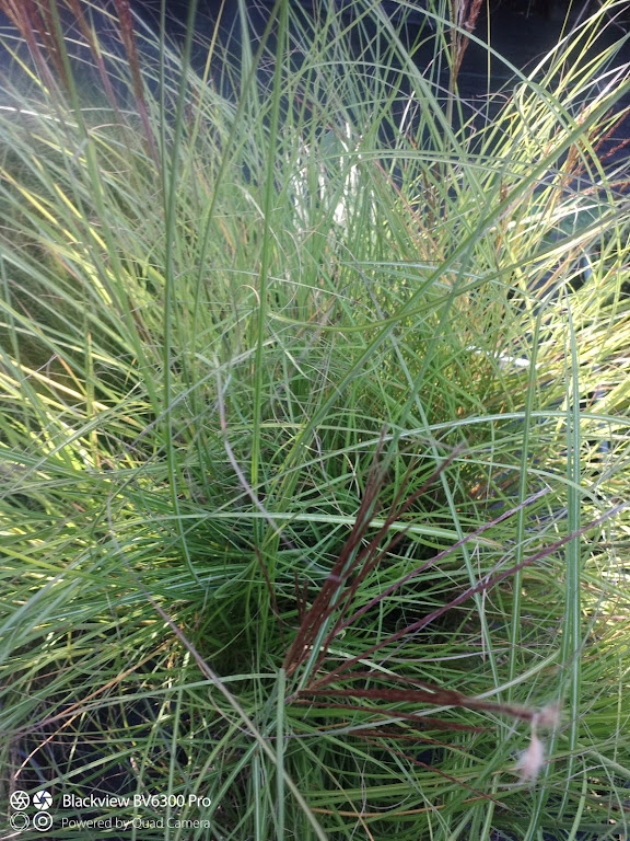 Дуже вражаючий високий міскантус, дуже схожий на Miscanthus Gracilimus, має поздовжні, ширші, листя звисає листя.