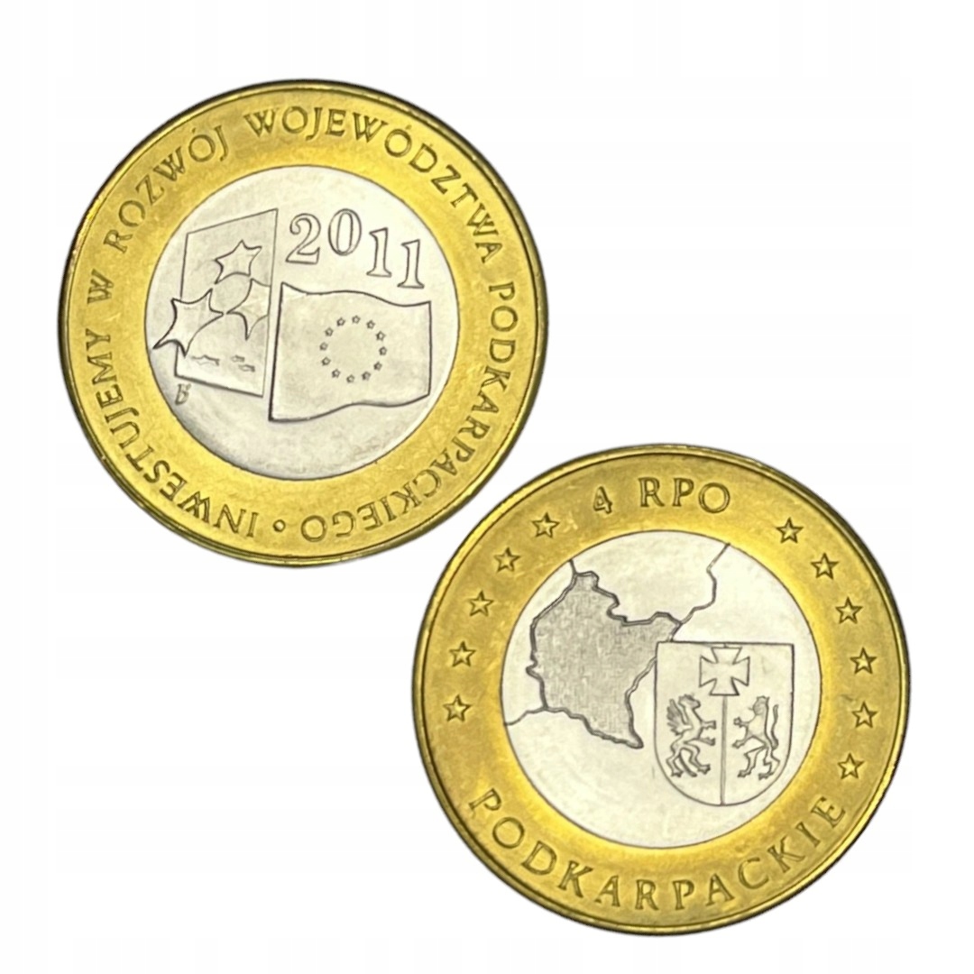 Місцеві/міські дукати номіналом 4 РРО b> пам'ятний - "Герб Підкарпатського воєводства, прапор із трьома зірками та прапор Європейського Союзу".