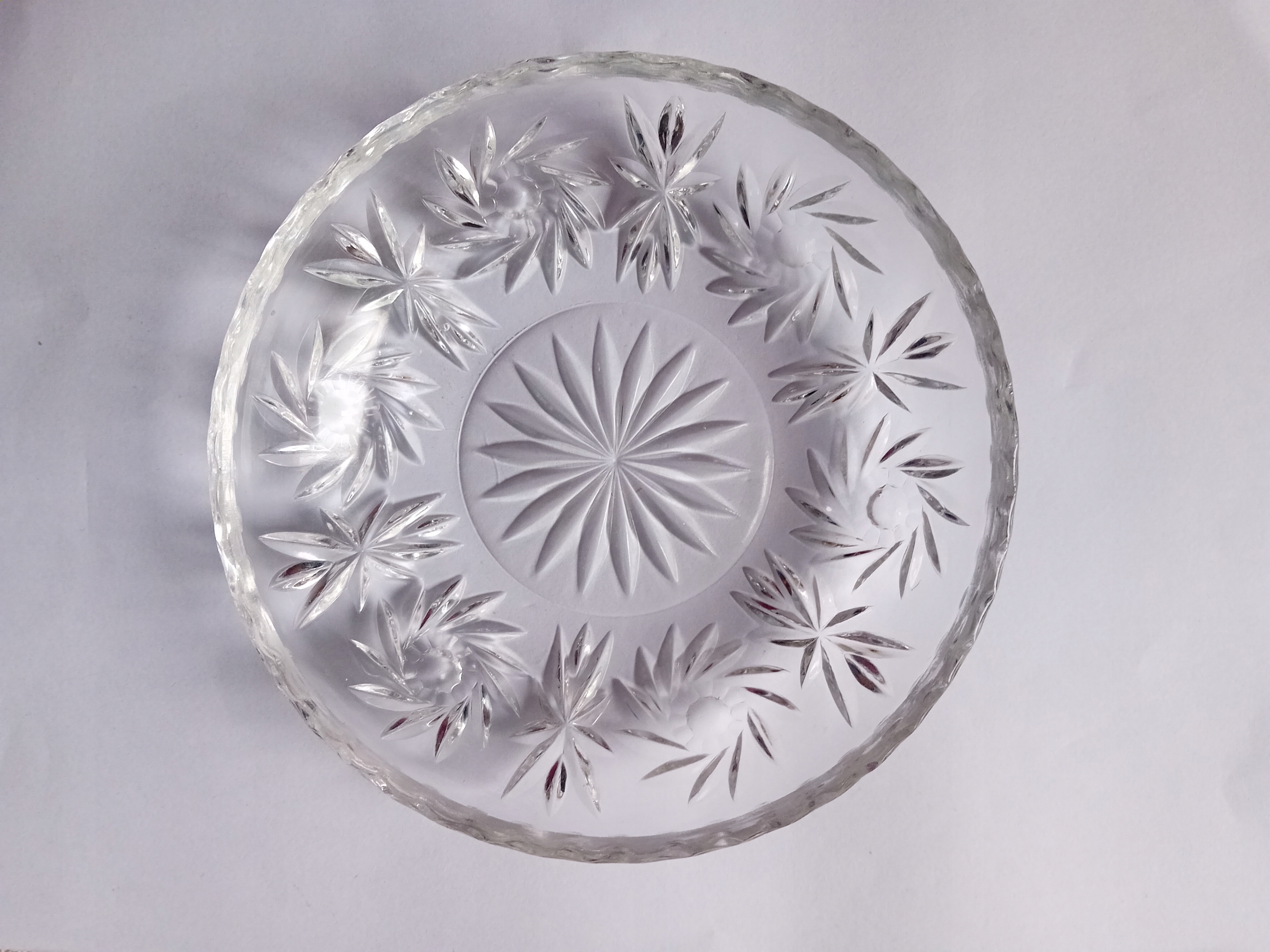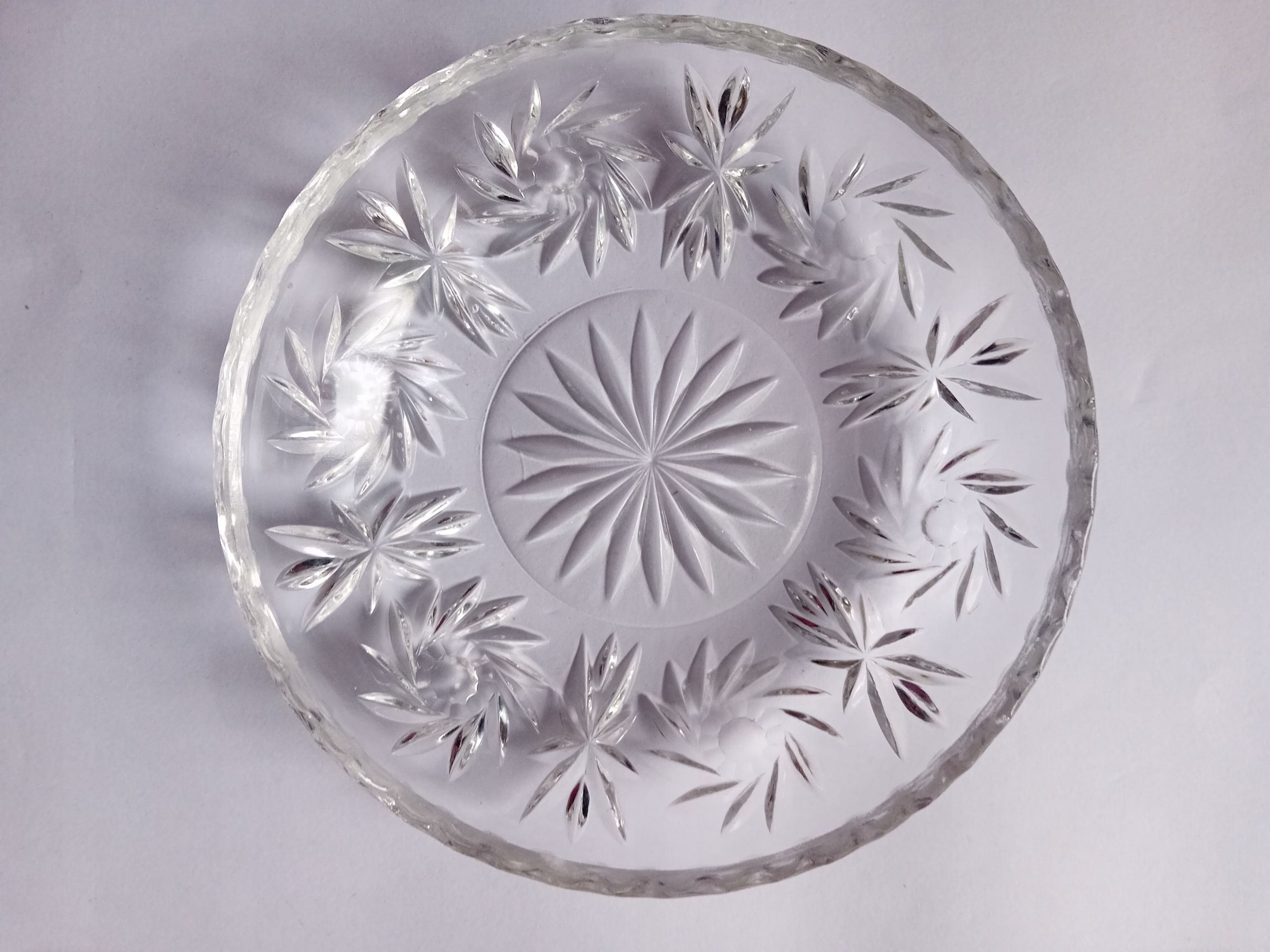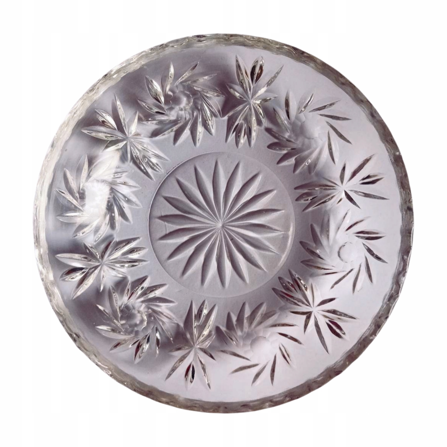 Miseczka z transparentnego szkła prasowanego, zdobiona rozetami. PRL.