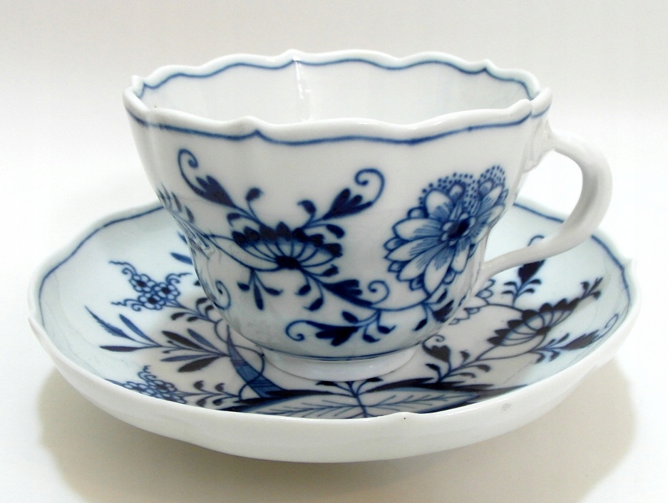 Красива старовинна чашка з білої порцеляни, прикрашена візерунком кобальтової цибулі. ВЕЛИКА ЧАШКА