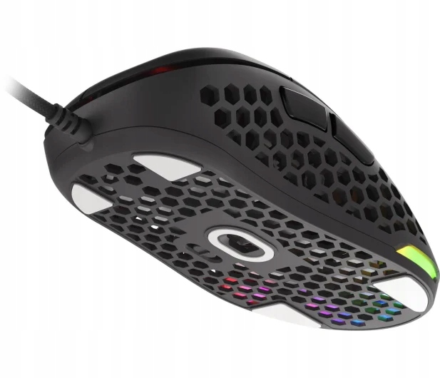 Отвори в миші не лише зменшують вагу гризуна. Вони також дарують вашим очам характерний дизайн, який справляє враження. Тонкий силует у поєднанні з вражаючим підсвічуванням RGB, яке можна настроїти програмним забезпеченням і доступним у 9 режимах, створює унікальну атмосферу та покращує естетичний вигляд вашої підставки.