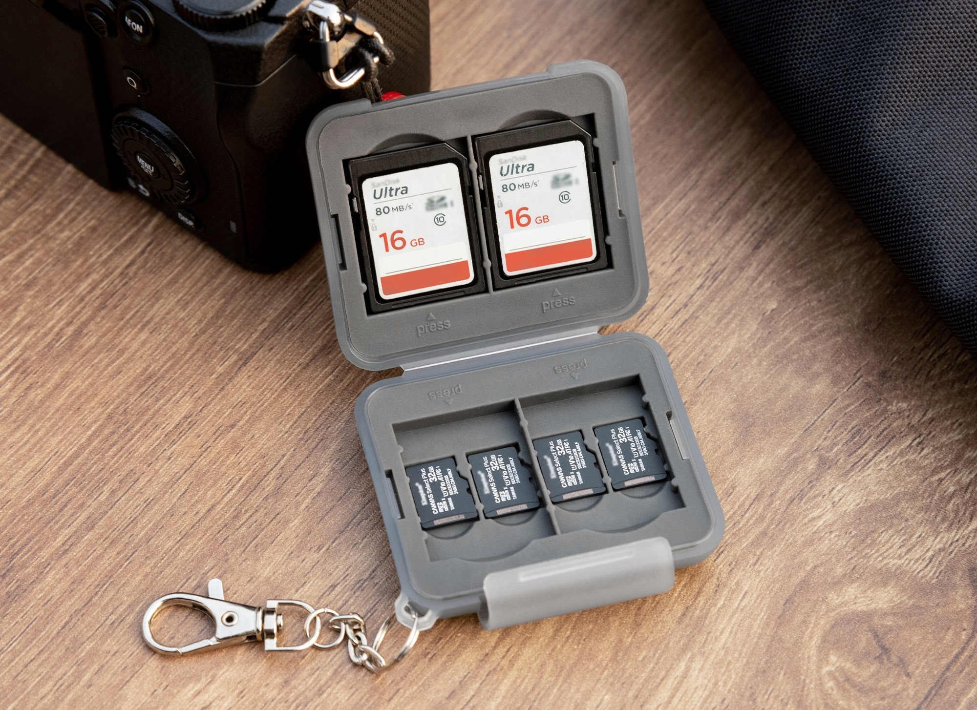 Ласкаво просимо на цей привабливий аукціон, де я представляю функціональний футляр, призначений для зберігання карт пам’яті форматів micro SD, SD, SDXC і SDHC. Цей футляр і зручний брелок призначені для людей, які часто користуються картами пам’яті та хочуть безпечно їх носити.