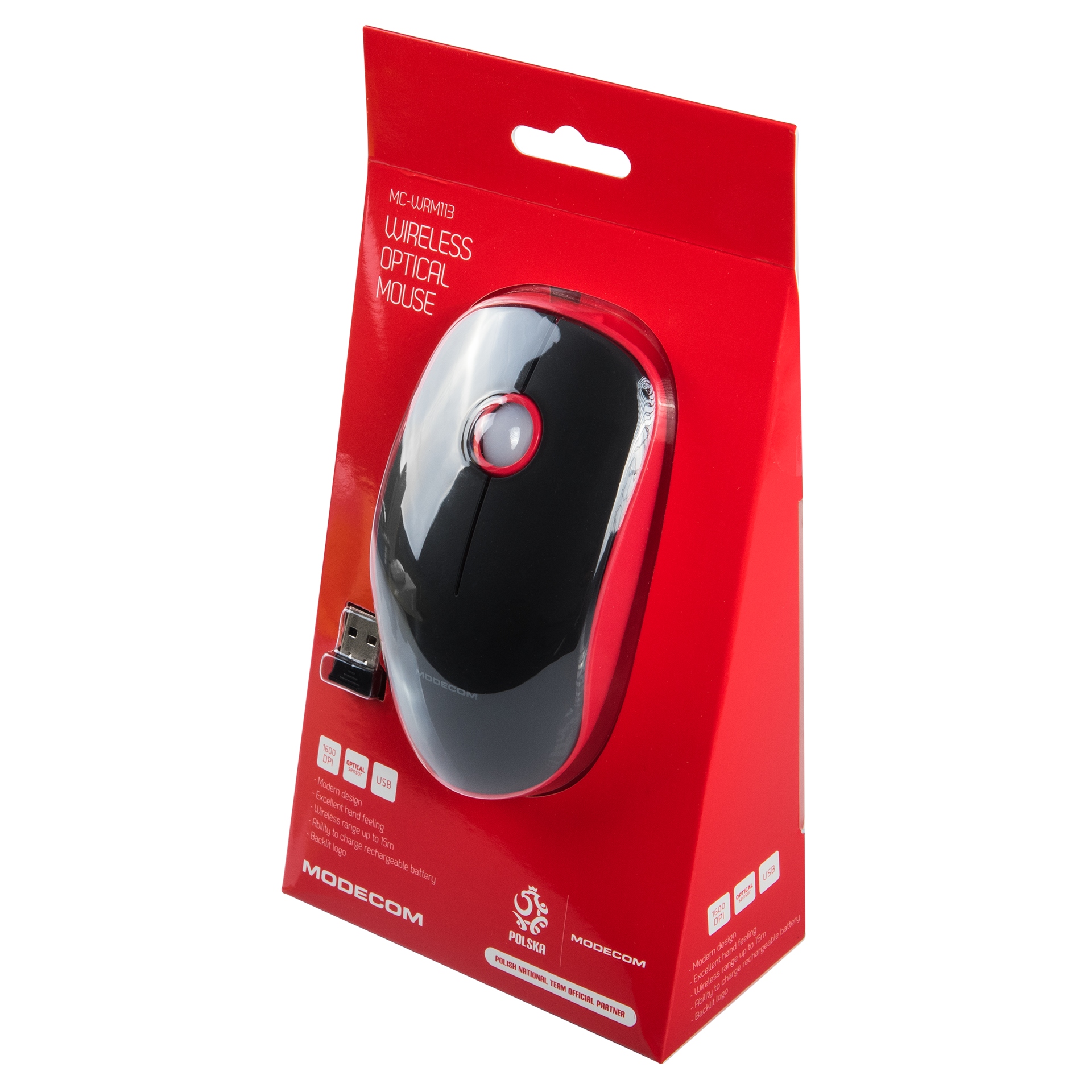 -це високоякісна бездротова оптична миша, оснащена високоякісним оптичним датчиком з роздільною здатністю 1600 dpi. Вже при першому контакті з Modecom MC-WRM113 Mouse вас зачарована стрункою конструкцією з характерним зменшеним профілем. Завдяки ергономічній, спрощеній конструкції, миша ідеальна в його руці, і її користувач не буде втомленим навіть після декількох годин використання. Миша чудово справляється як на поверхнях світлих кольорів, так і на більш темних кольорах. Поверхня миші виготовлена з приємного до сенсорного матеріалу, перевага якого полягає в тому, що після використання відбитків пальців немає. Його чорно-червоний корпус прикрашений логотипом виробника червоного високого рівня. Ретельно вибраний розмір миші та низька вага гарантують комфортну роботу більшості користувачів, тоді як завдяки вбудованому акумулятору 350 мАг ви забудете про необхідність мати запасні акумулятори раз і назавжди. Акумулятор можна в будь -який час, використовуючи розетку Micro USB на передній частині миші.
