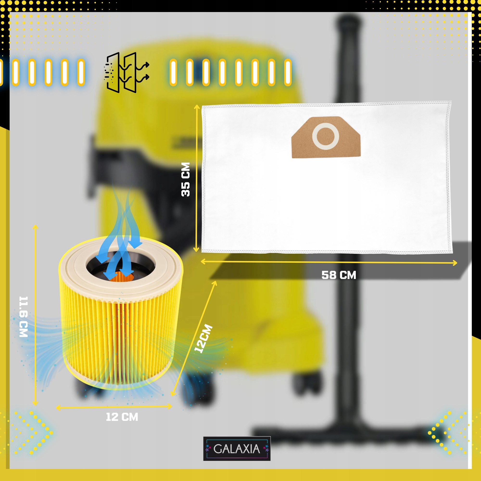 Набір мішків 10 штук + фільтр для вакуумного очищувача Karcher від Galaxia польської марки Galaxia - це визначеність стандарту, який ви шукаєте . Виберіть продумані рішення. клієнти. Пристрої Galaxia -це гарантія якості, надійності та відмінне співвідношення ціни.