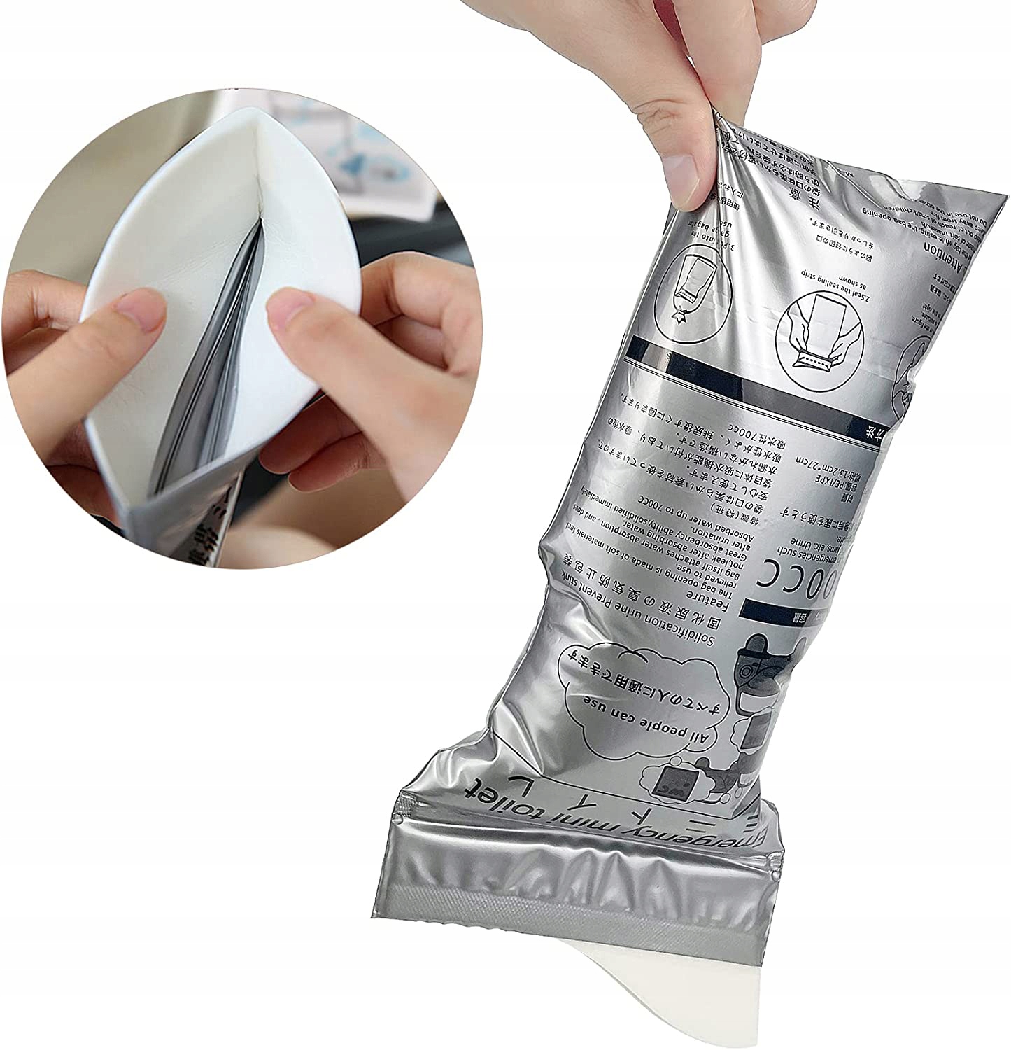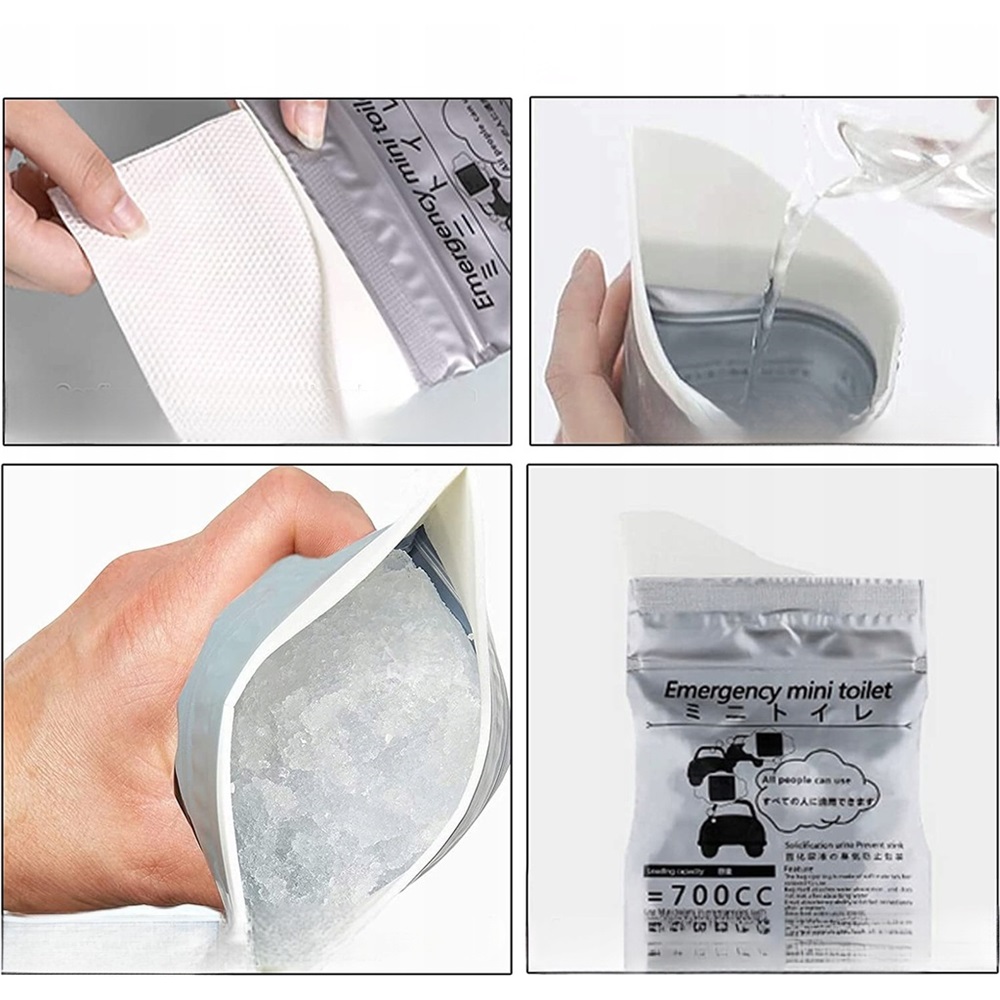 ✅ Висока поглинаюча здатність: Просто відкрийте аварійну сумку, і вона готова до використання. Білий мішок для сечі виготовлено з полімеру, який поглинає рідину, перетворюючись на гель протягом 60 секунд, запобігаючи витоку та запаху, забезпечуючи здорове та гігієнічне відчуття.