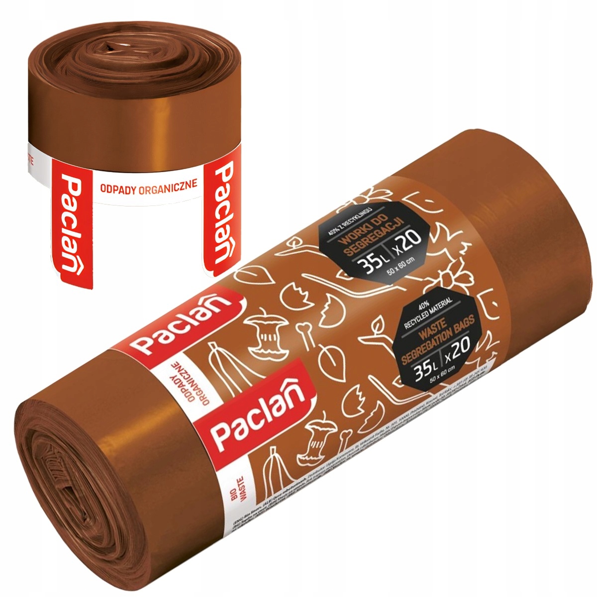 Пакети для розділення сміття Paclan 35L (20 шт.) - Коричневий (біо - органічні відходи)