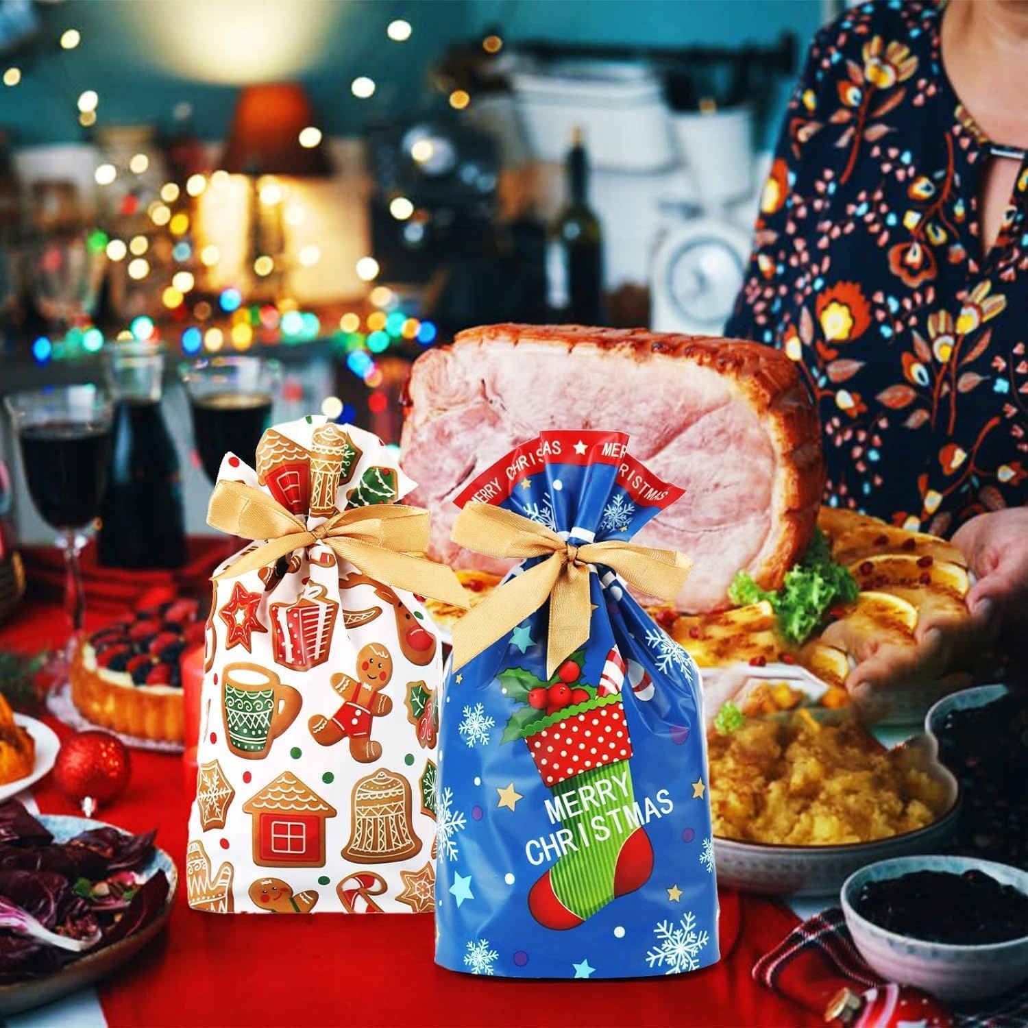 - Набір включає 10 мішків розміром XL, , що забезпечує достатньо для багатьох подарунків. Про різдвяні дизайни , що робить їх ідеальним доповненням до кожного подарунка.