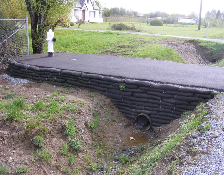 Сумка виготовлена зі спеціального нетканого полотна (суміш первинних і перероблених синтетичних волокон) щільністю від 195 до 245 г/м2, яке є міцним і гнучким. Тканина не руйнується в ґрунті (не розкладається біологічно) і може витримувати значні порізи чи розриви без негативного впливу на ефективність системи підпірної стінки рослинності. Мішки стійкі до погодних умов, ультрафіолетового випромінювання, пропускають воду та коріння рослин.