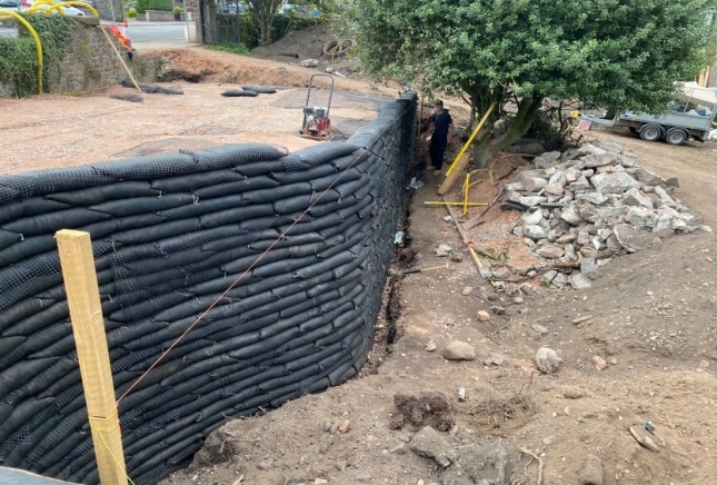 Спинки для будівництва підпірних стінок використовуються для створення структурних бар’єрів, які можна використовувати для зміцнення берегів річок, захист від повеней, будівництво шумових бар'єрів або навіть як тимчасові стіни в будівництві. Зазвичай це сумки зі стійкого до стирання і водопроникного матеріалу. Їх заповнюють землею, піском або іншим сипучим матеріалом, а потім розташовують в обраній конфігурації, створюючи стіну потрібної висоти і форми. Ці мішки популярні завдяки простоті використання та можливості швидко побудувати конструкцію, не потребуючи спеціального обладнання чи навичок.