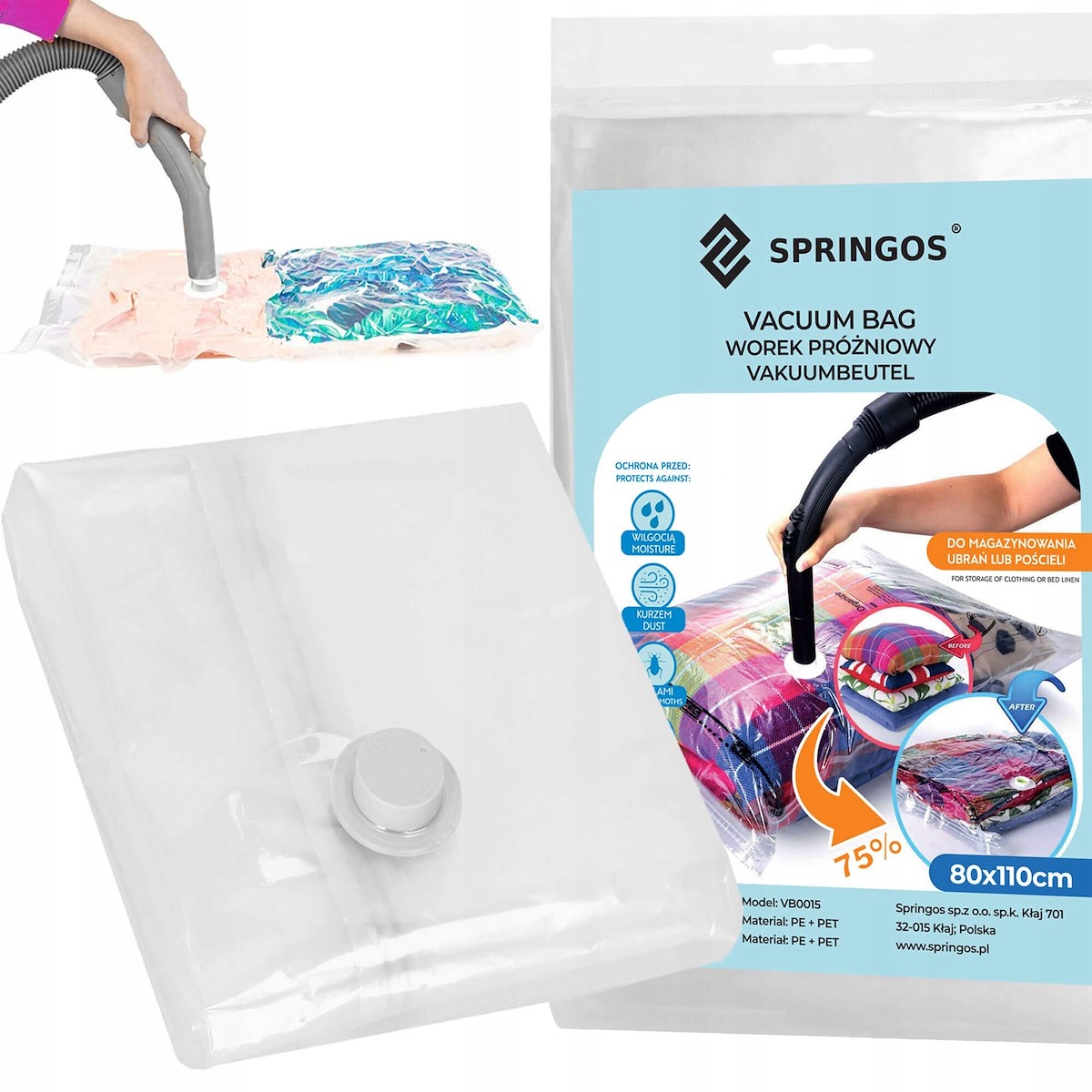 Вдома важливий кожен сантиметр збереженого простору, так само під час подорожі вакуумні пакети Springos, це чудово рішення, завдяки якому ви можете заощадити 75% простору, висмоктуючи з них повітря. Ви економите місце