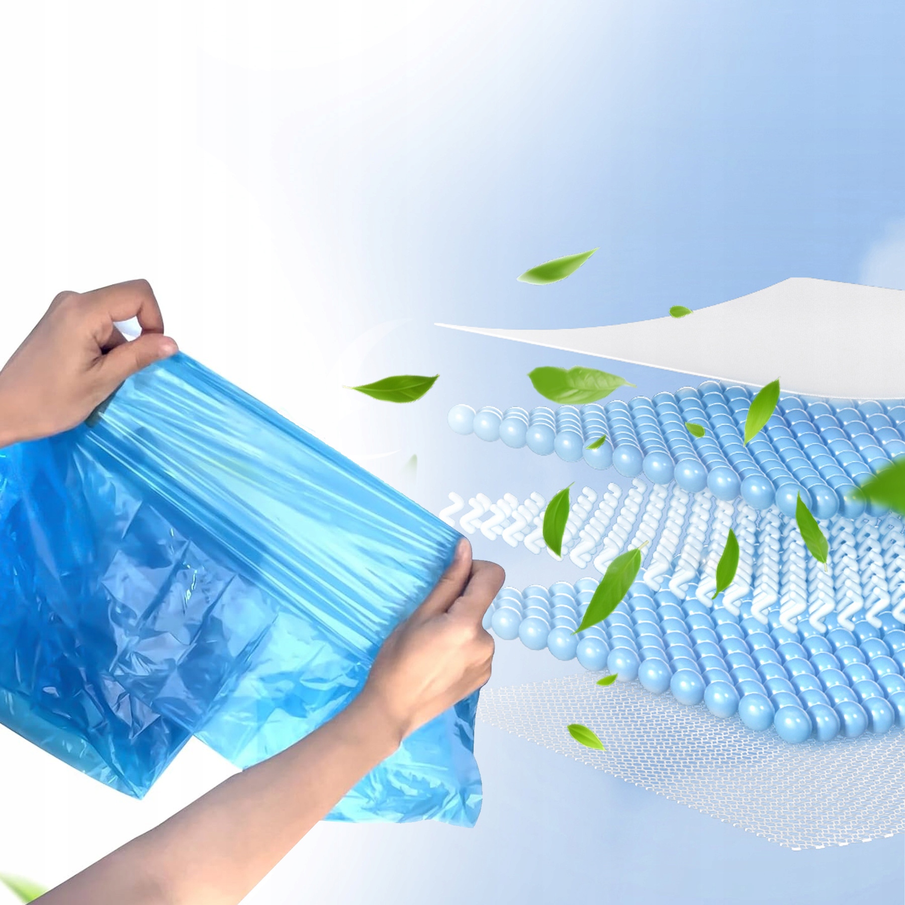 Наші поліетиленові пакети виготовлені з високого бар'єрного матеріалу, використовуючи новітню технологію, товщина поповнення підгузників відповідає 7 шарам пластикових пакетів, високоякісного матеріалу працює як бар'єр, що ефективно запобігає розповсюдженню неприємних запахів, в той час як серцевина пелюшки несе запах лаванди, так що повітря в кімнаті завжди свіже.
