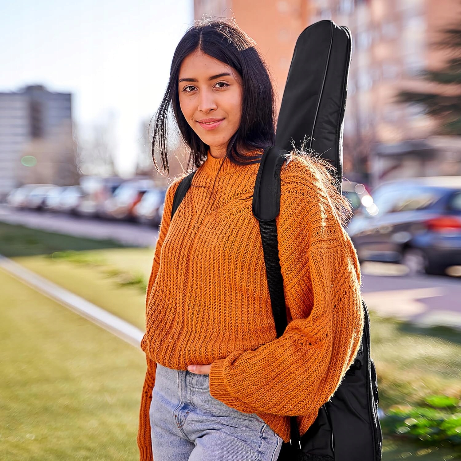 Зовнішні розміри: довжина 110,5 см, шириною 45 см. Ширина шийки матки - 13 див. Верхня зовнішня кишеня: 25х37 см, щоб уникнути неправильної покупки, підтвердьте розмір гітари. Пінопінет товщиною 8 мм.