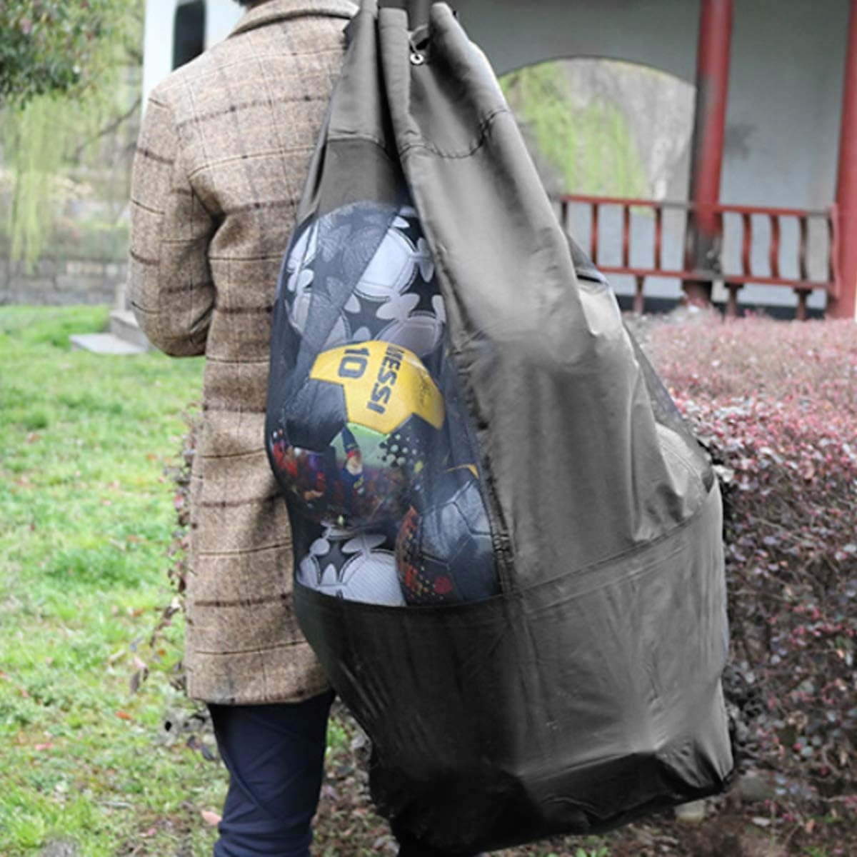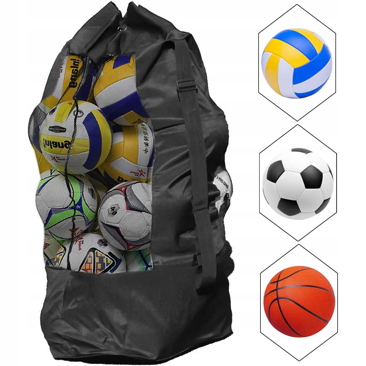 ⚽【 достатньо місця】: Розмір волейбольного футбольного мішка -нижній діаметр 49 см , висота 110 см , достатній для 15 м'ячів. Підсилена сітка 110 г/м², стійка до розриву та тривалого тривалого часу.