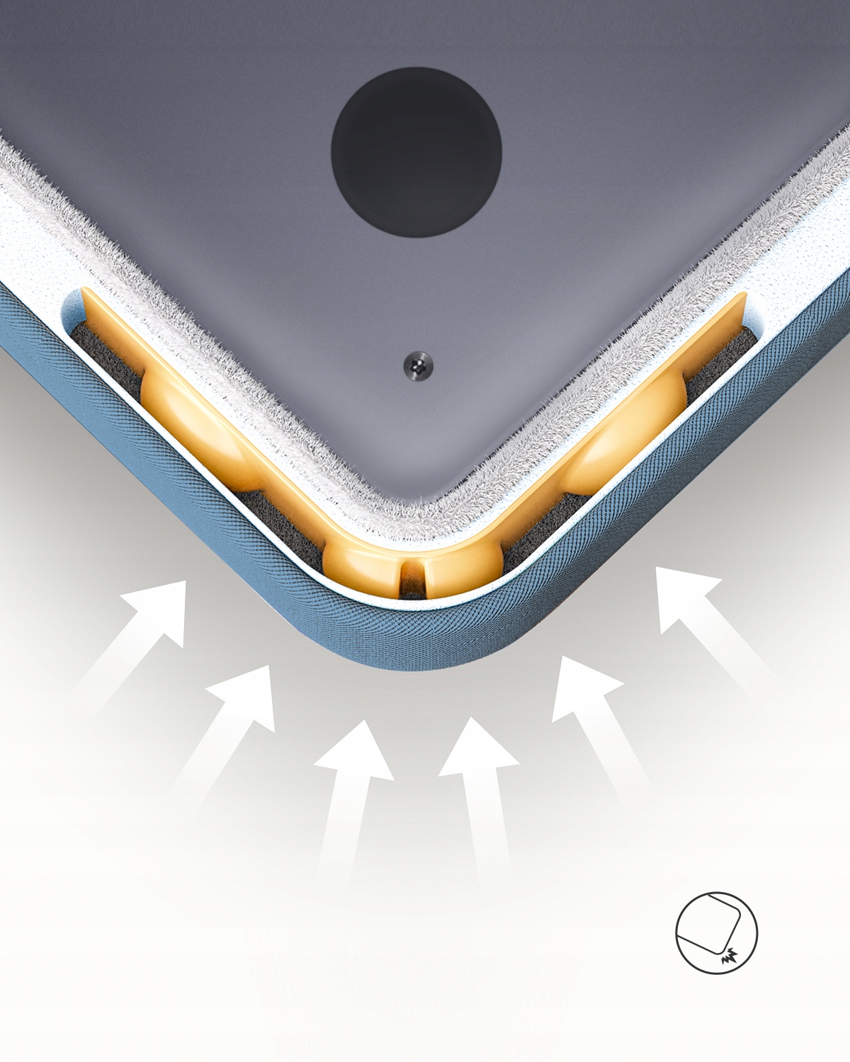 Ваш пристрій заслуговує на найвищий рівень захисту. OmniProtect оснащений спеціально підкладеною камерою, яка охоплює ваш ноутбук м'якістю, забезпечуючи безпеку проти потрясінь та випадкових падінь. Це елегантний захист, який йде рука об руку з вашим динамічним життям.