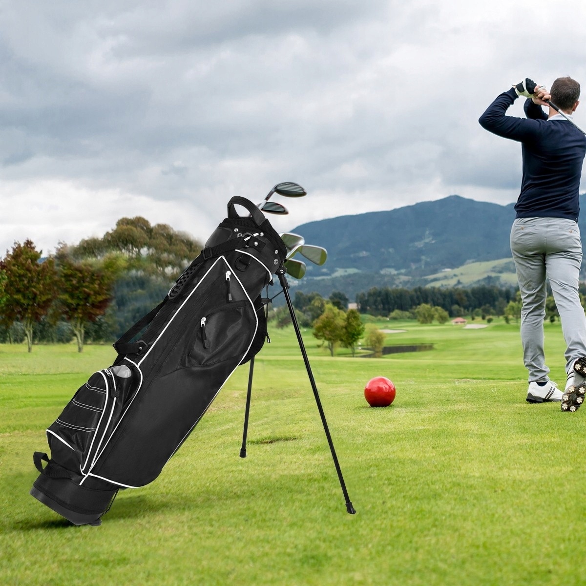 Виведіть аксесуари для гольфу на новий рівень! Ця легка та міцна сумка для гольфу є ідеальним вибором для кожного любителя гольфу. Завдяки чотирьом кишеням і великій місткості в ньому помістяться всі необхідні речі - від ключок для гольфу до м'ячів, рушників і дрібних аксесуарів.