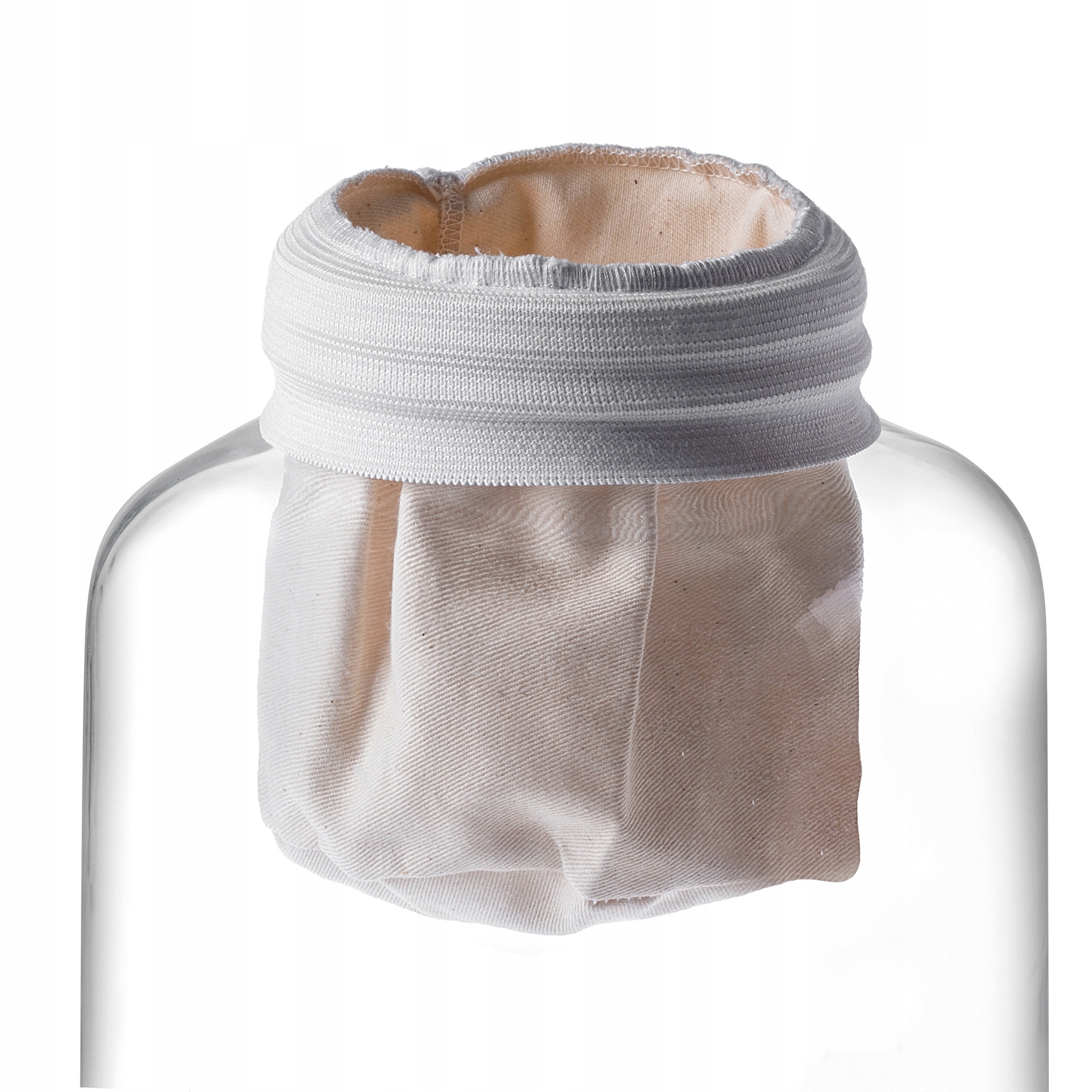➡️Покладіть пакет на банку, натягнувши вшиту гумку на край, щоб утримувати його стабільно.