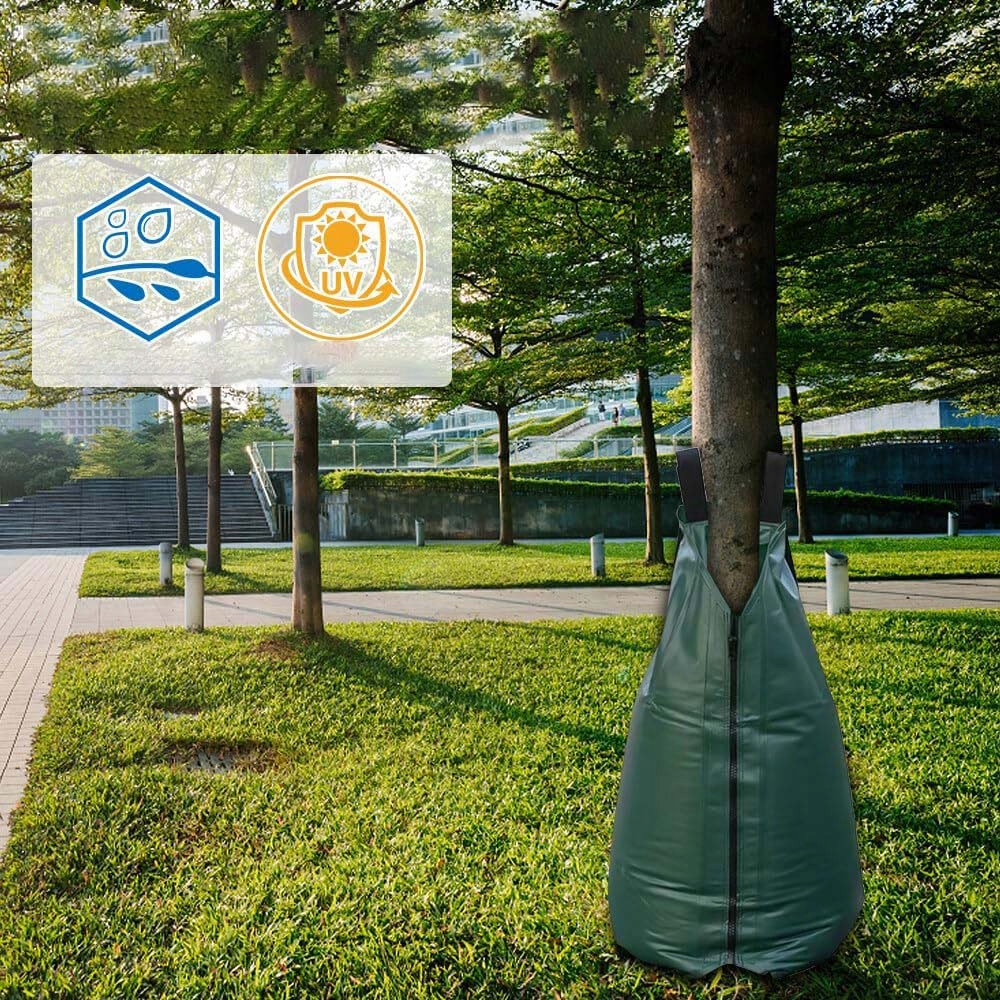 Сумка для поливу дерева виготовлена з високоякісного міцного матеріалу ПВХ, міцного та стійкого до сліз, матеріал є ультрафіолетовим та стійким до температури, що робить його ідеальним для використання в саду, розблокованого поливу дерева може бути легко зберігатися, коли не використовується взимку, повторно використовується весна та влітку.