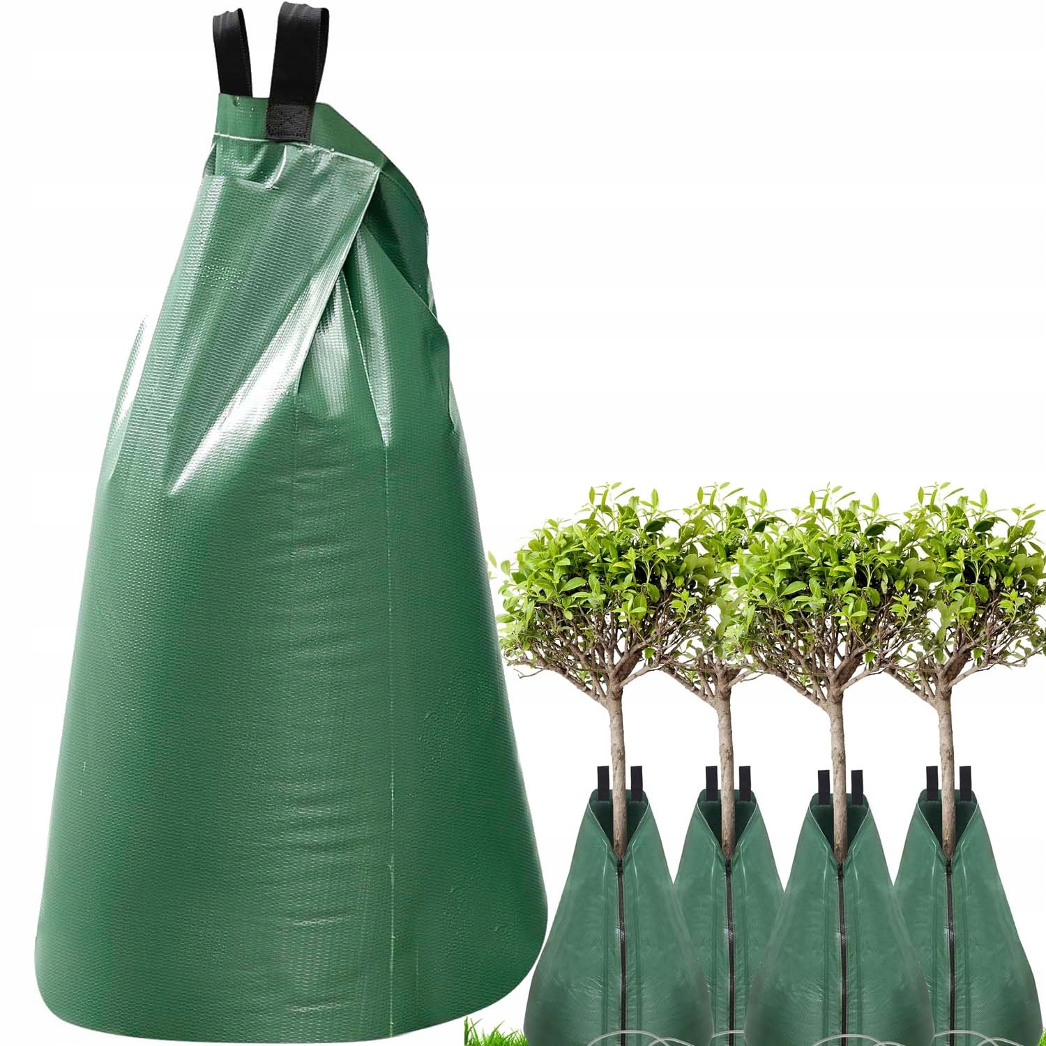 Сумка для поливу дерев складається з блискавки, наповненої водою з крапельними отворами внизу. Мішок для поливу дуже простий у використанні, покладіть на багажник з стовбура і закрийте його на блискавку, вода протікає через зливні отвори на дні, а дерева постійно і рівномірно поливаються. У випадку з більшими деревами ви можете використовувати кілька блискавок, з'єднаних з мішком для поливу.