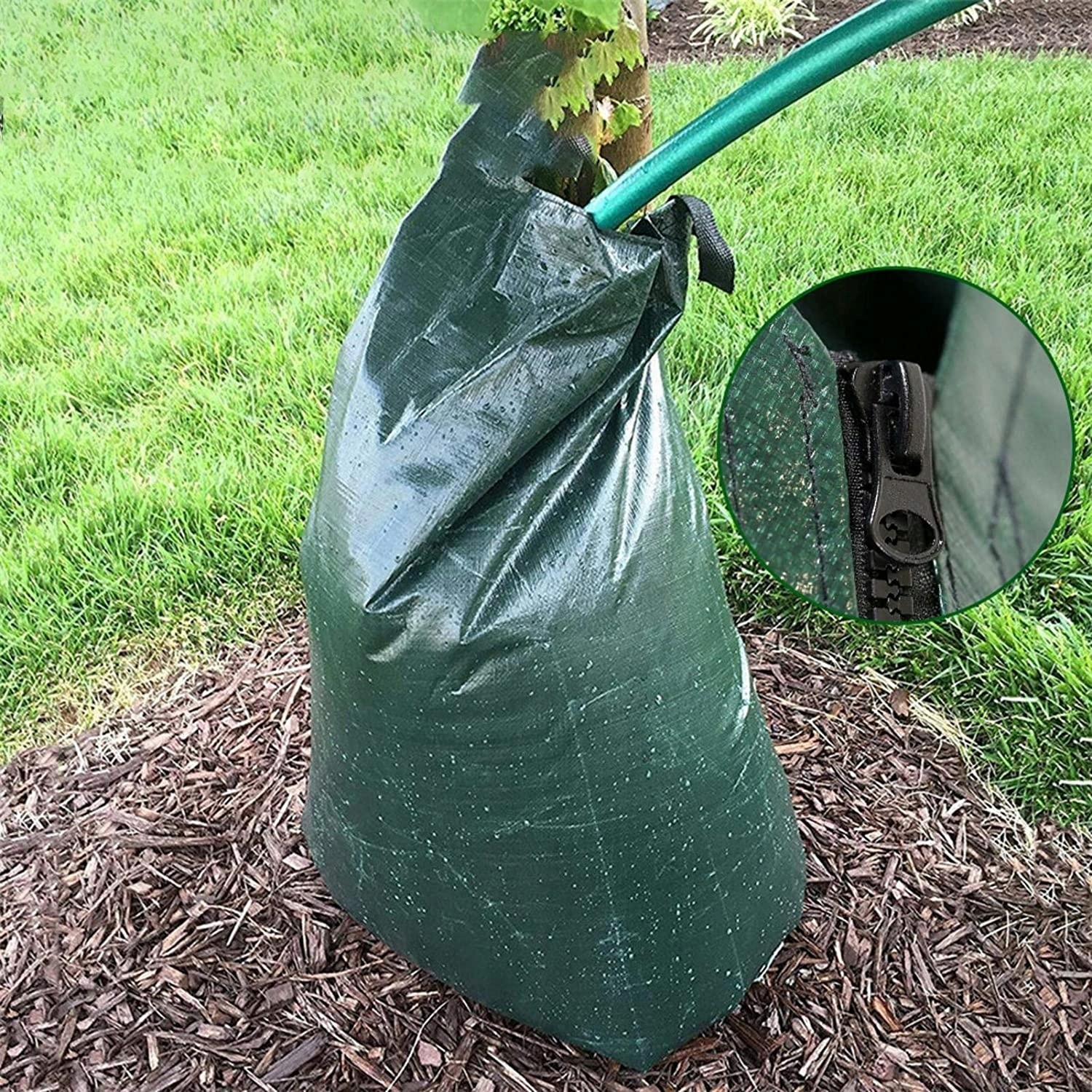 ✅Простий у використанні:Операція дуже проста: помістіть мішок навколо стовбура дерева та закріпіть його, а потім наповніть із садовим шлангом, збільшений. Отвір легко заповнити шлангом, для великих дерев можна використовувати кілька блискавок.