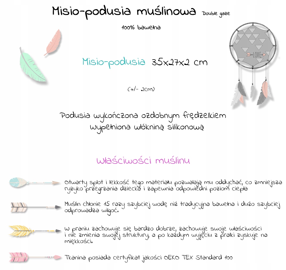 Оплачивая «Misio-podusia MUŚLIN __ Frędzelki __ 35x27 PREMIUM», вы можете быть уверены, что данное изделие из каталога «Подушки» будет доставлено из Польши и проверено на целостность. В цене товара, указанной на сайте, учтена доставка из Польши. Внимание!!! Товары для Евросоюза, согласно законодательству стран Евросоюза, могут отличаться упаковкой или наполнением.