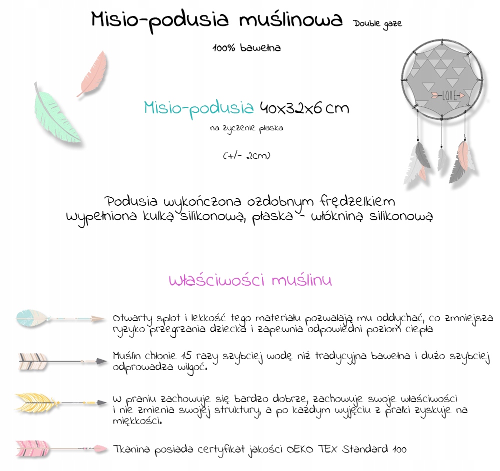 Misio-podusia MUŚLIN __ Frędzelki __ 40x32 PREMIUM